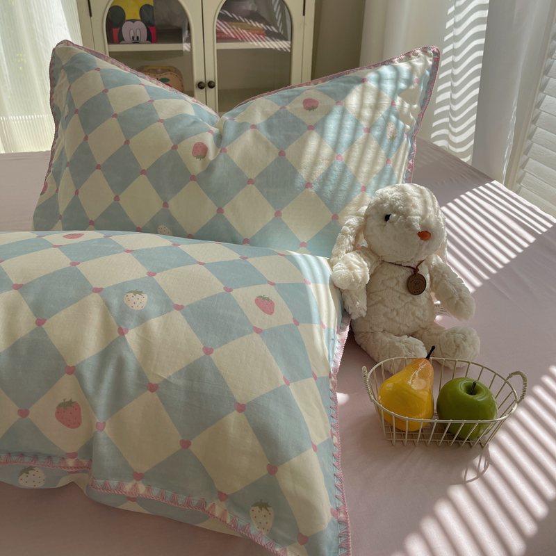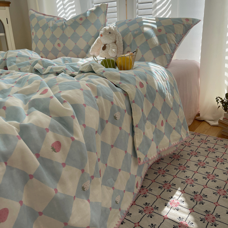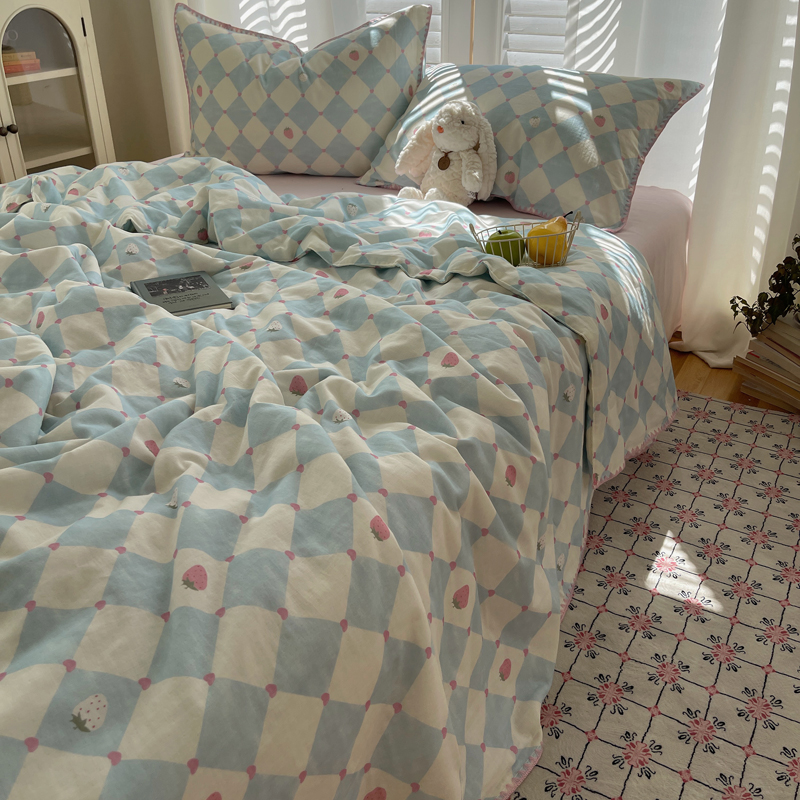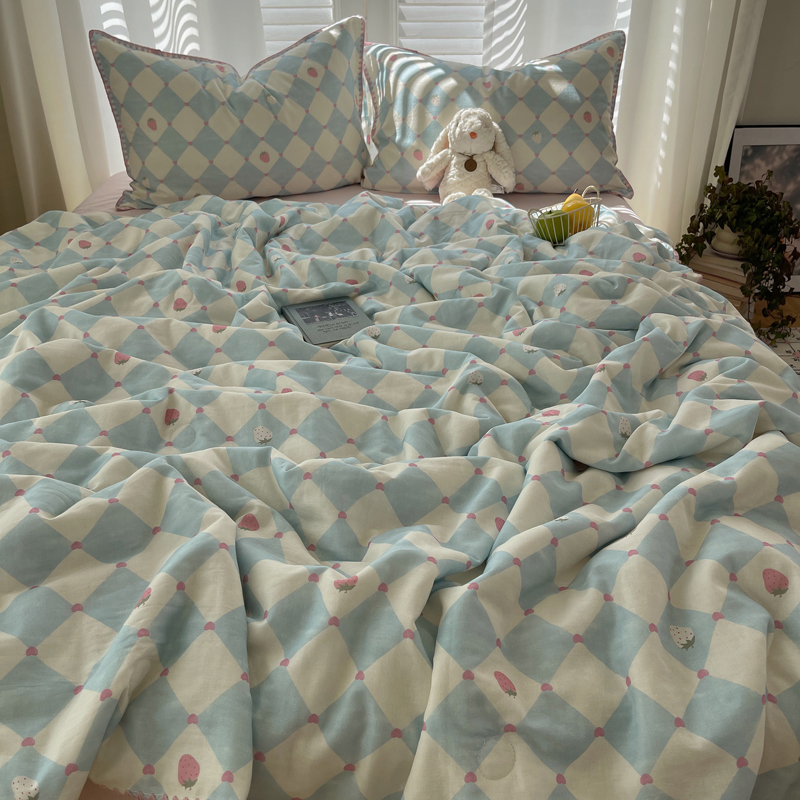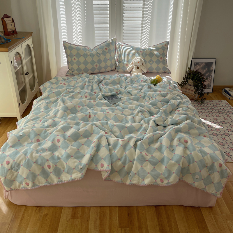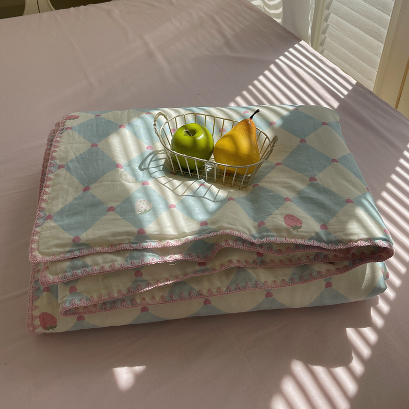 商品名称:TT.one 塔塔家居 2025新款全棉双层纱贝壳边夏被系列 草莓酱·蓝