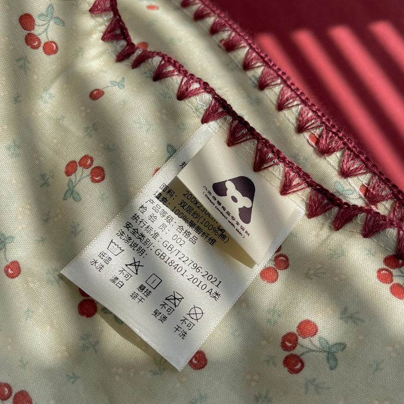商品名称:TT.one 塔塔家居 2025新款全棉双层纱贝壳边夏被系列 小樱桃