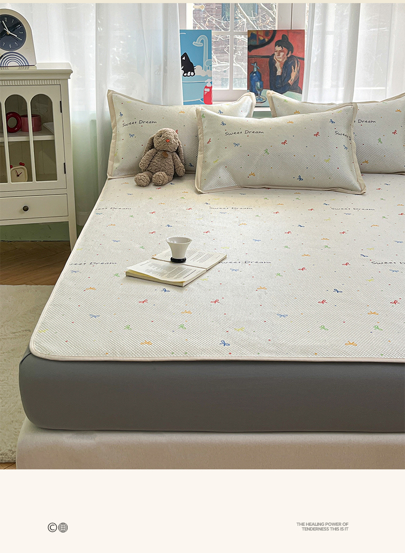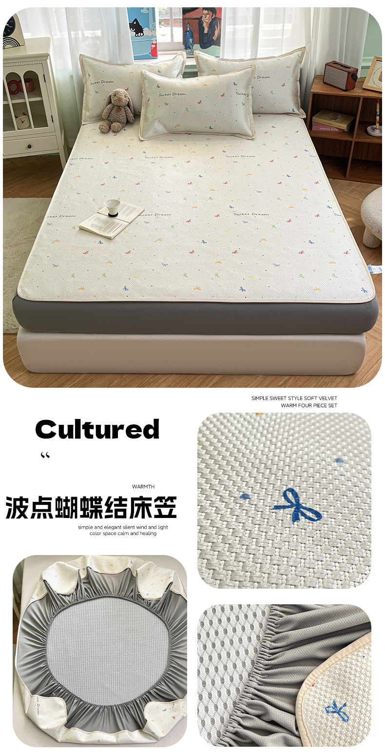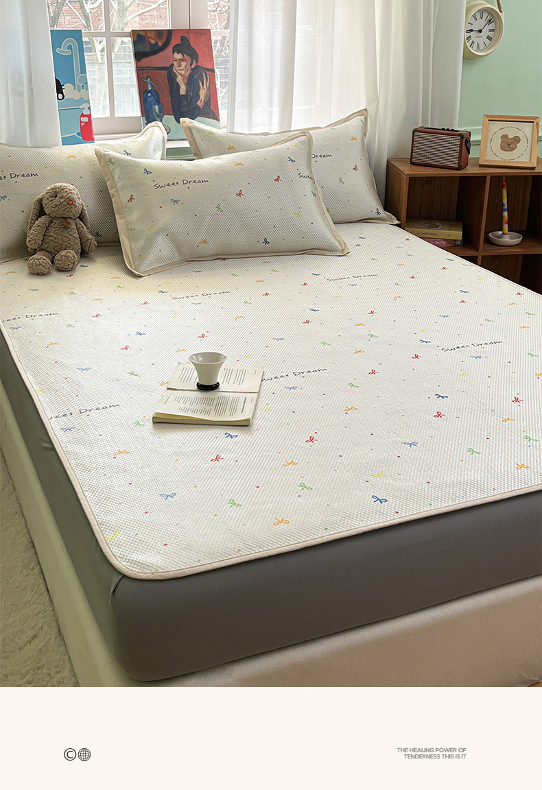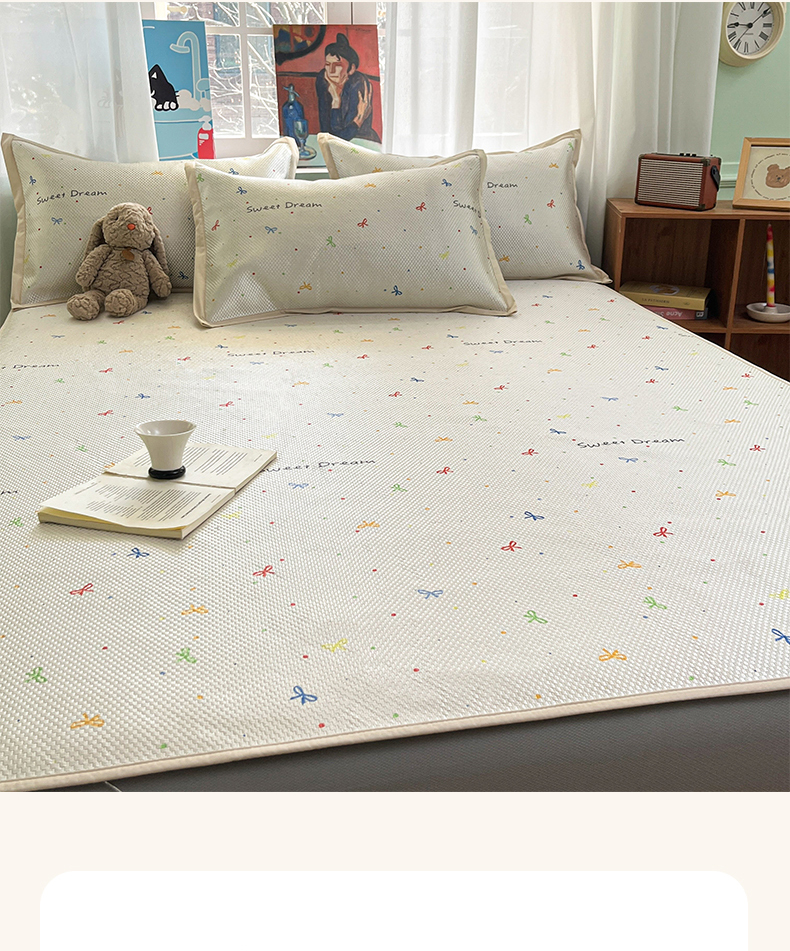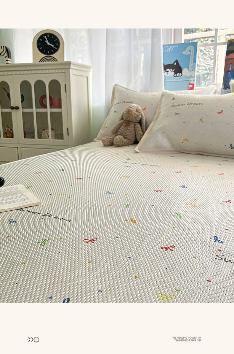 商品名称:布卢姆床垫2025新款A类数码印花冰藤席夏凉席--床笠款 波点蝴蝶结床笠