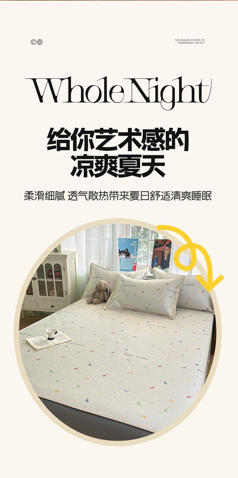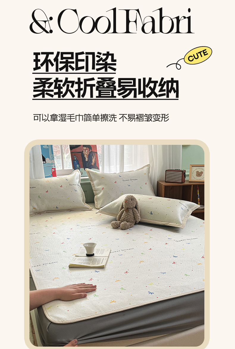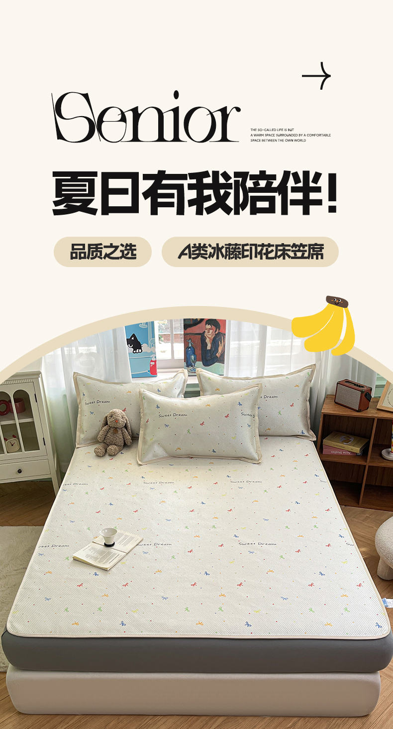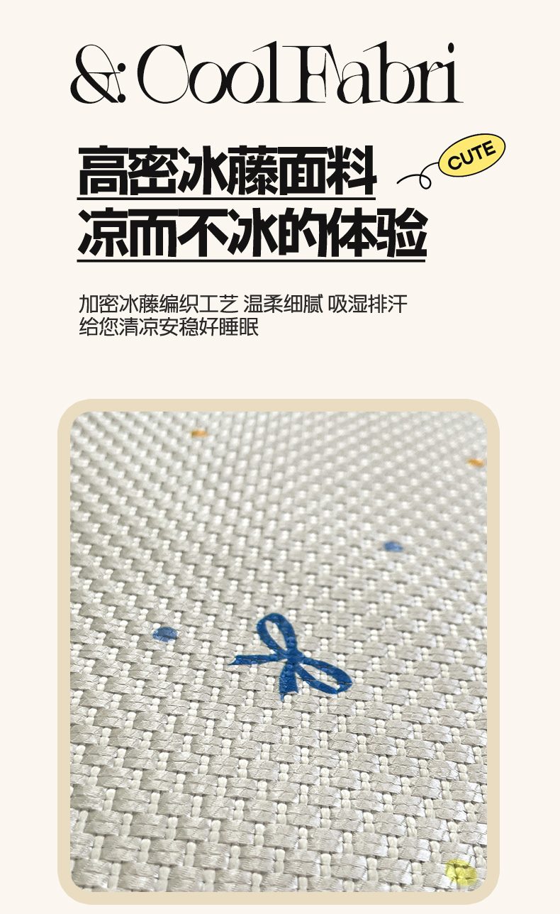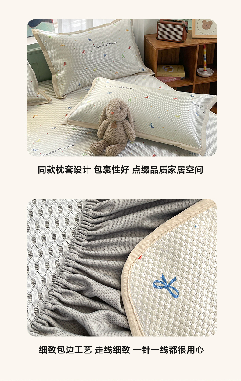 商品名称:布卢姆床垫2025新款A类数码印花冰藤席夏凉席--床笠款 波点蝴蝶结床笠