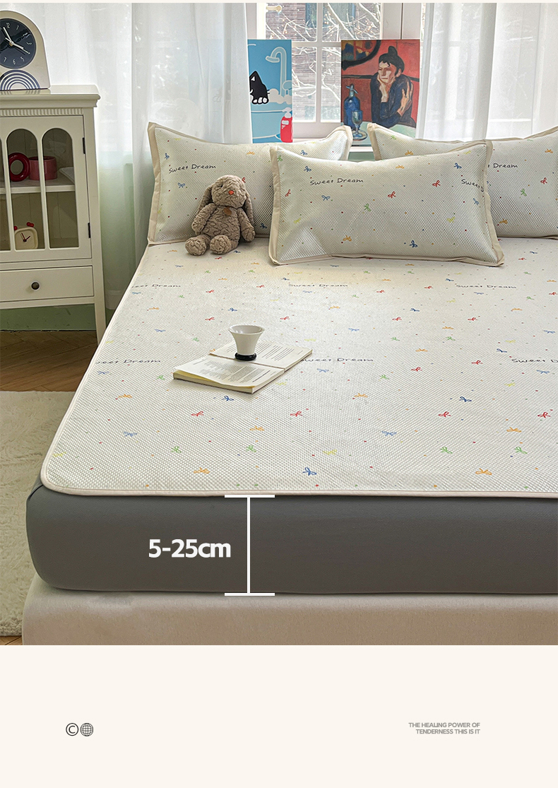 布卢姆床垫2025新款A类数码印花冰藤席夏凉席--床笠款 波点蝴蝶结床笠