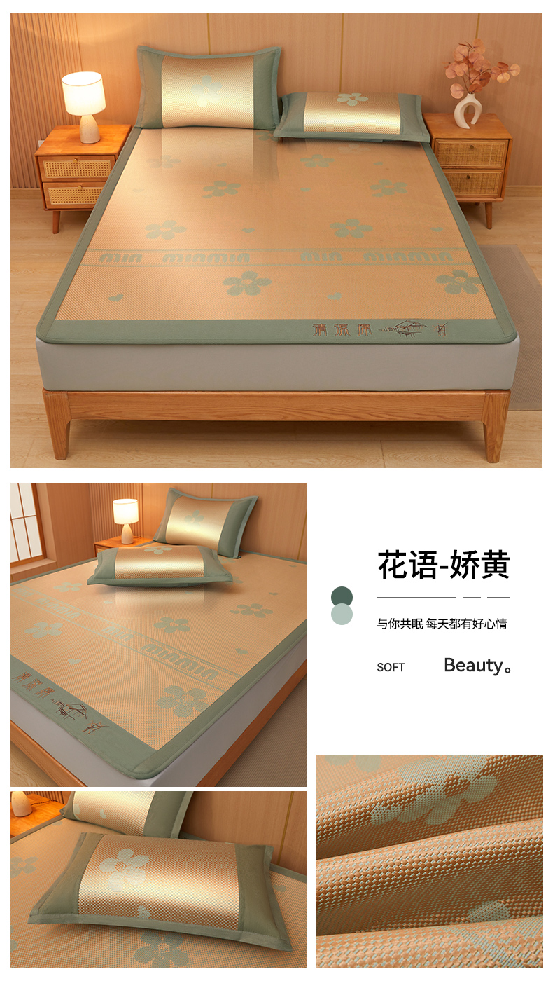 商品名称:全季家居 2025新款A类抗菌防螨清凉提花冰藤席凉席席子 花语-水绿 床笠