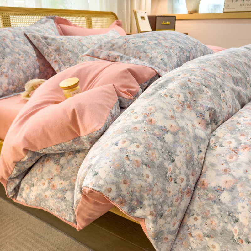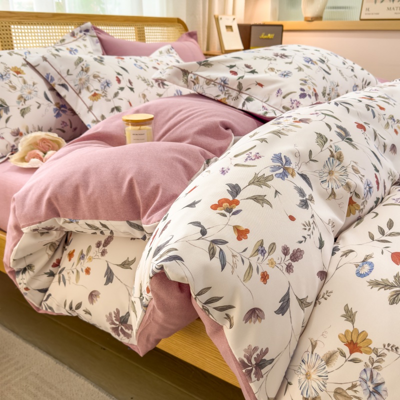 (总)鸿森林 2025新款全棉纯棉磨毛印花四件套,德芙-粉,花吟-黄,浪漫花舞-兰,露西-灰,律动-粉,落樱-粉,曼城-蓝,莫奈-灰,莫奈-咖,沙慕-蓝