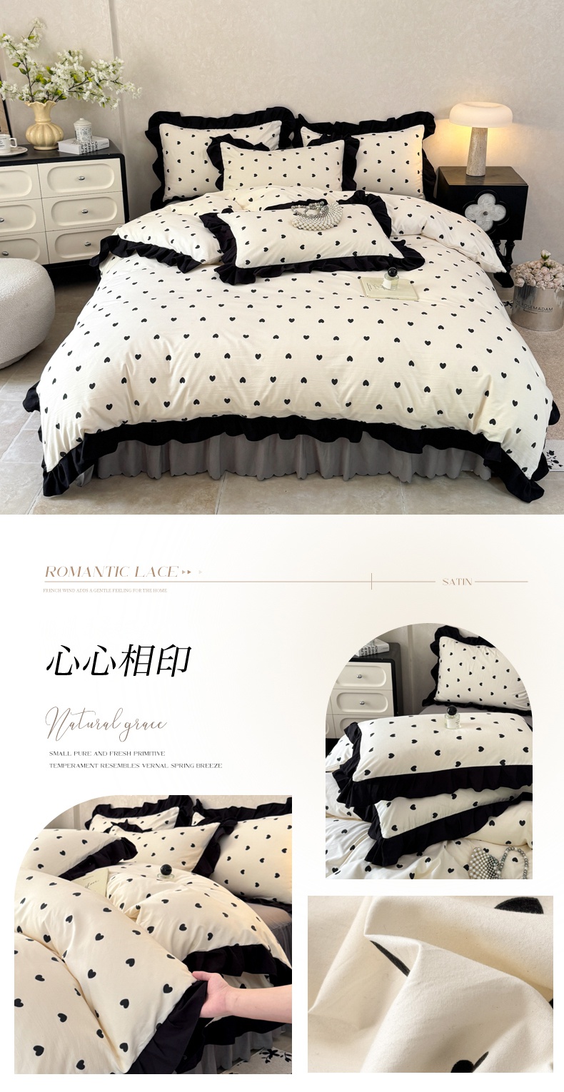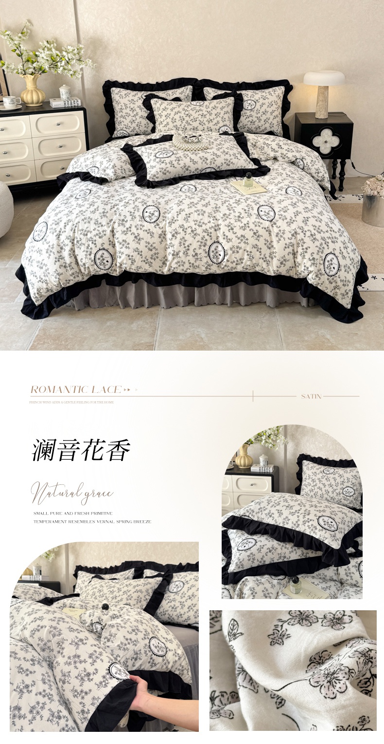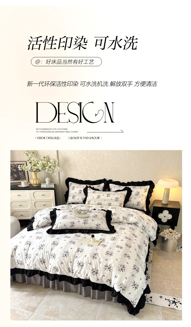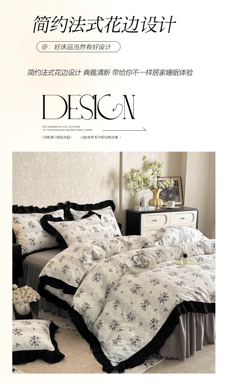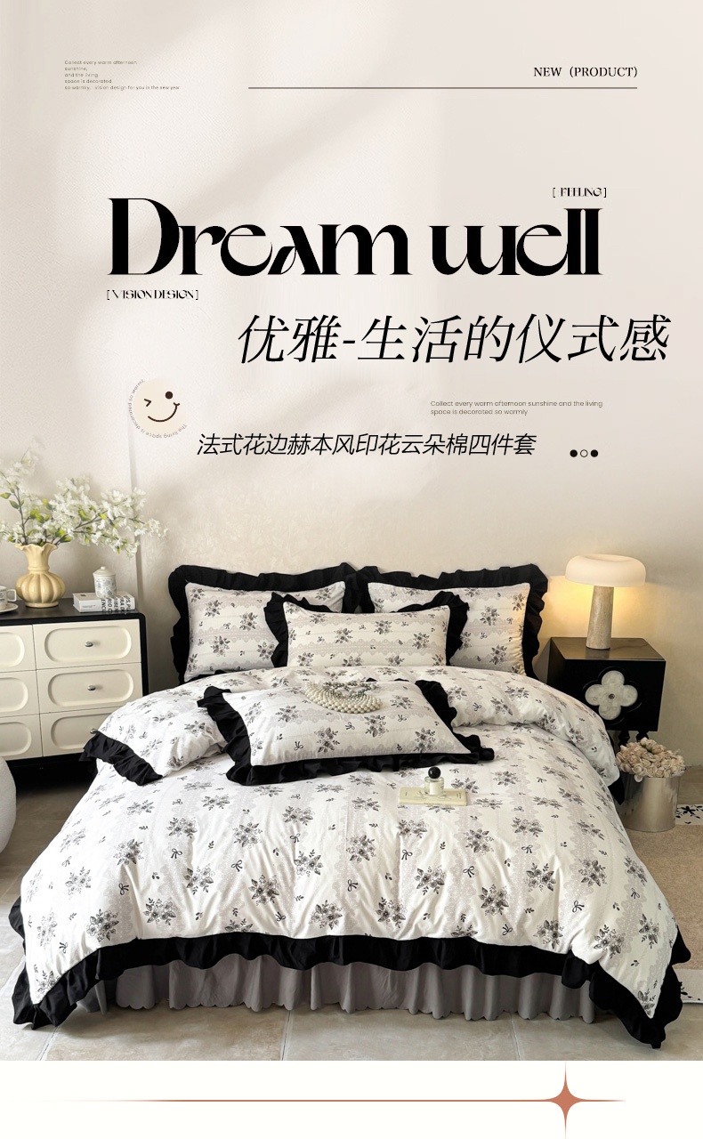 当前位置: 91家纺网 > 商品网购 > 床品套件 > 四件套 > 其它四件套 > 上尚居 2025新款法式花边赫本风印花云朵棉四件套 晚爱