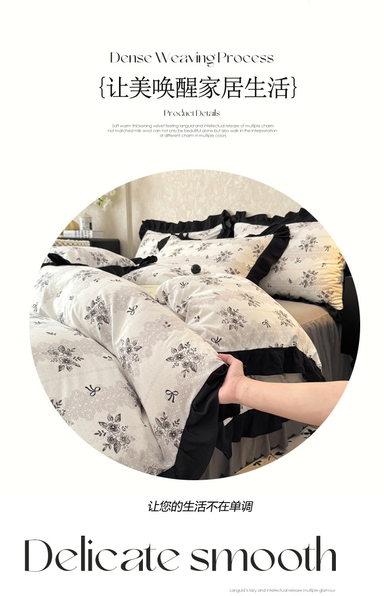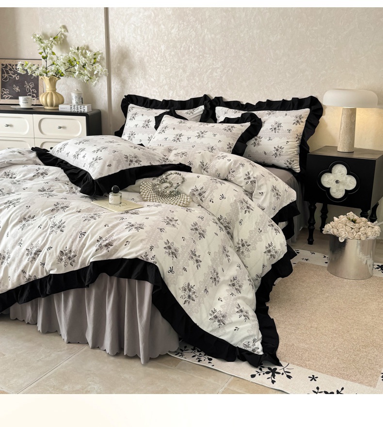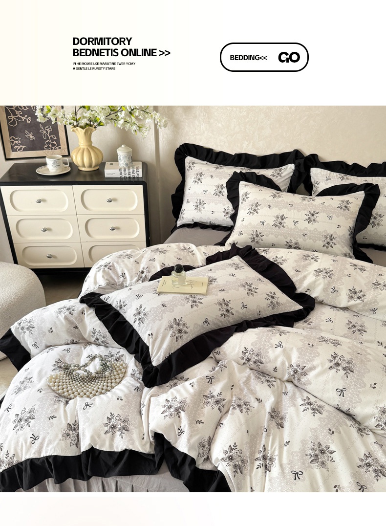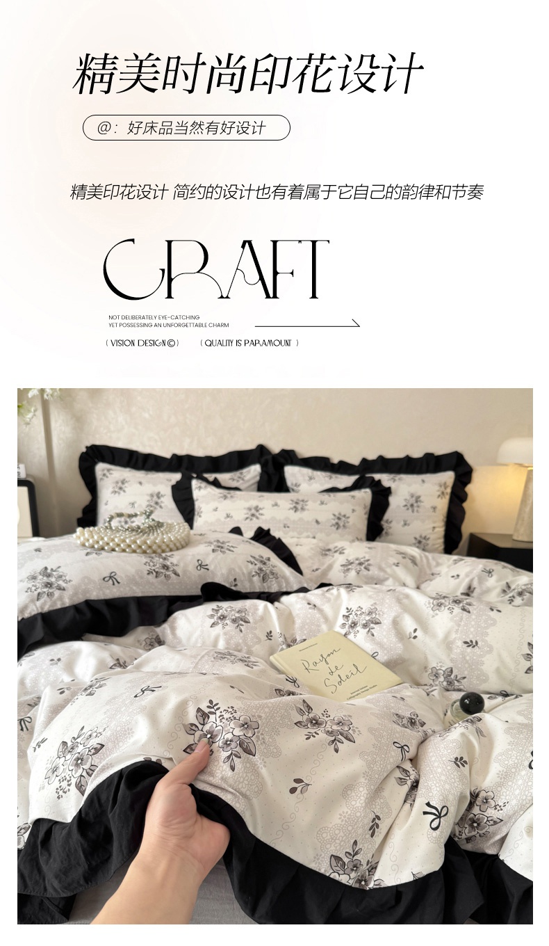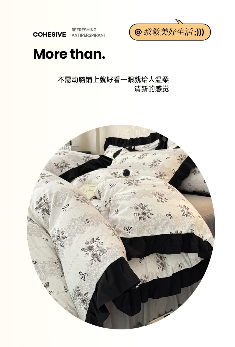当前位置: 91家纺网 > 商品网购 > 床品套件 > 四件套 > 其它四件套 > 上尚居 2025新款法式花边赫本风印花云朵棉四件套 晚爱