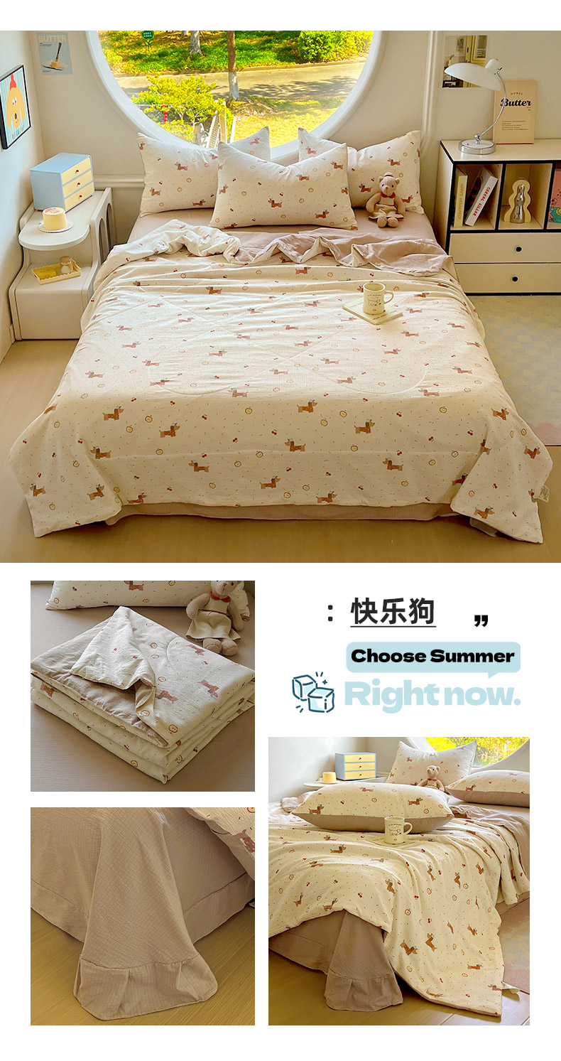 商品名称:金梦拉家纺 2025新款A类提花纱布双层纱夏被四件套 夏被-快乐狗