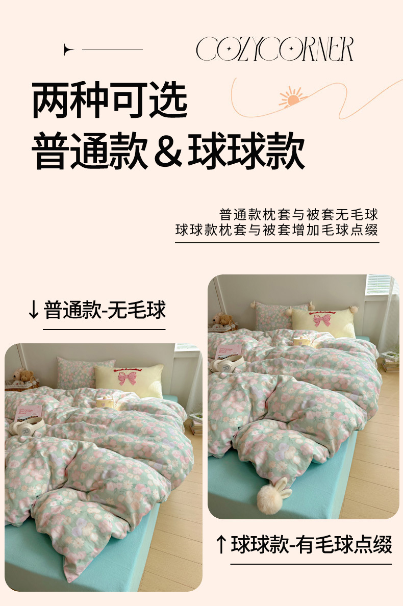 当前位置: 91家纺网 > 商品网购 > 床品套件 > 四件套 > 全棉普通四件套 > 丽涵家纺 2025新款全棉纯棉双层纱色织水洗棉毛巾绣四件套 花花兔-豆绿