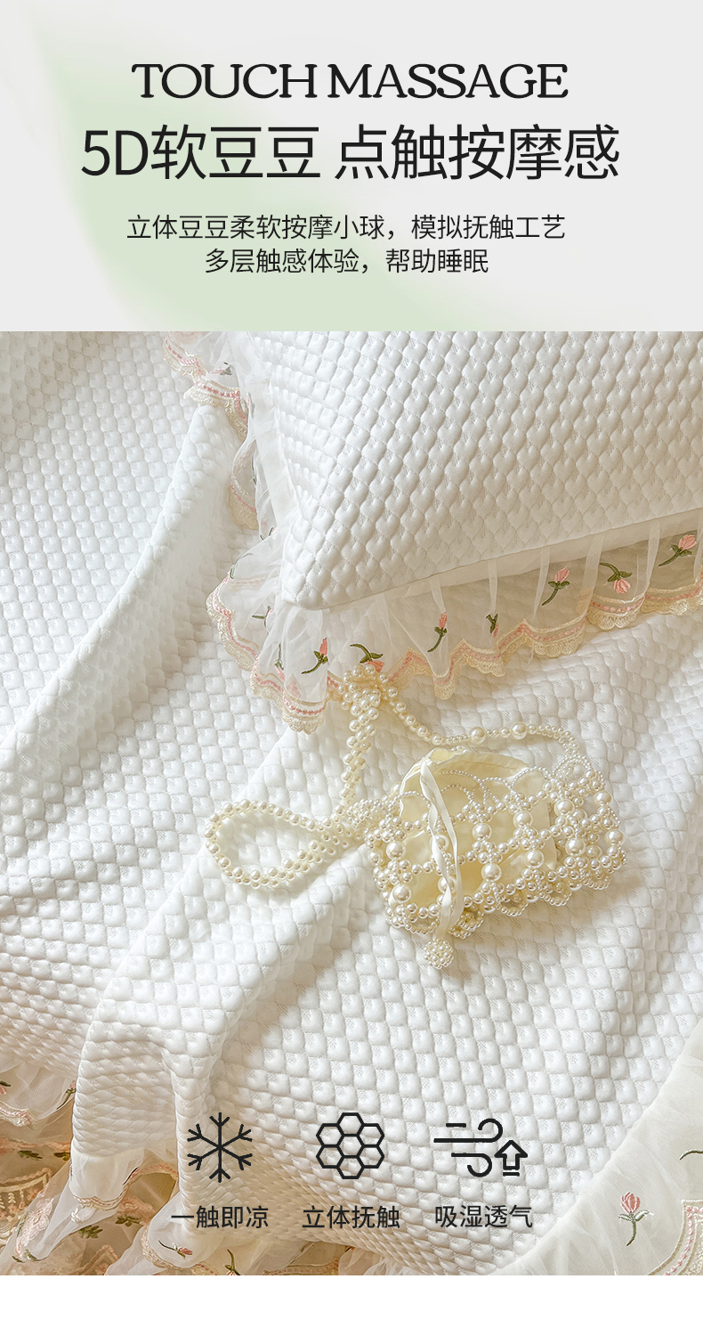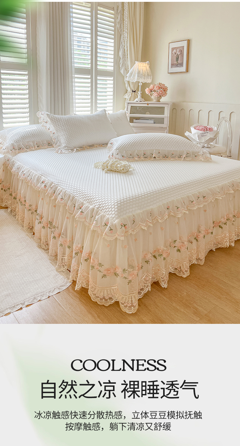 商品名称:(总)网红馆(ck家纺) 2025新款凉感蕾丝花边床裙款豆豆席凉席-艾薇儿