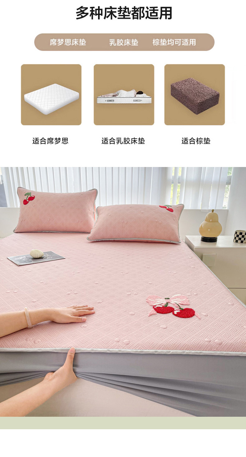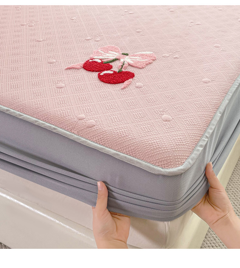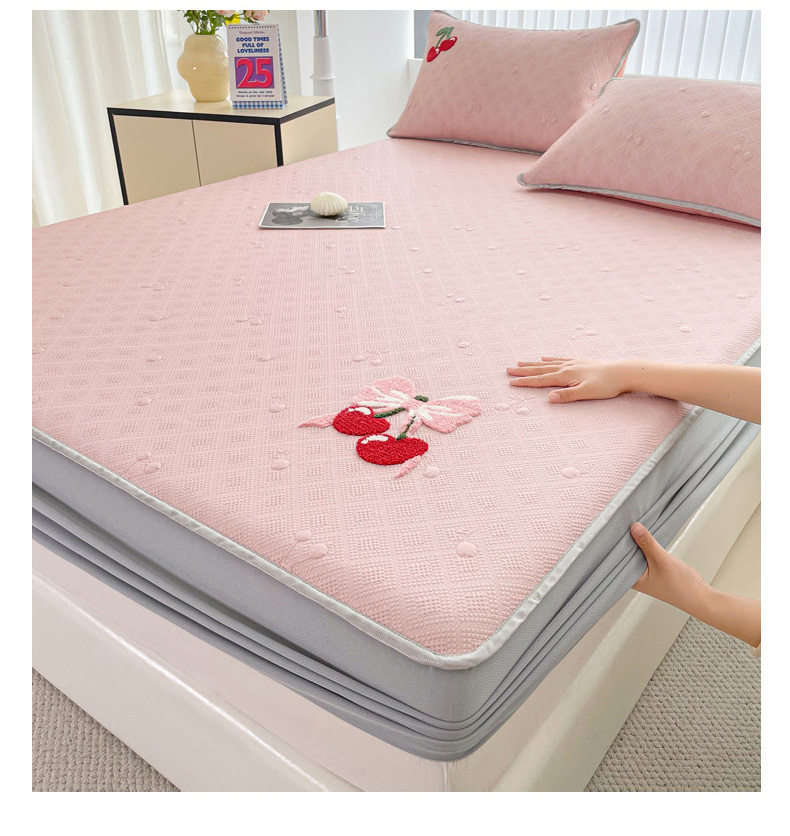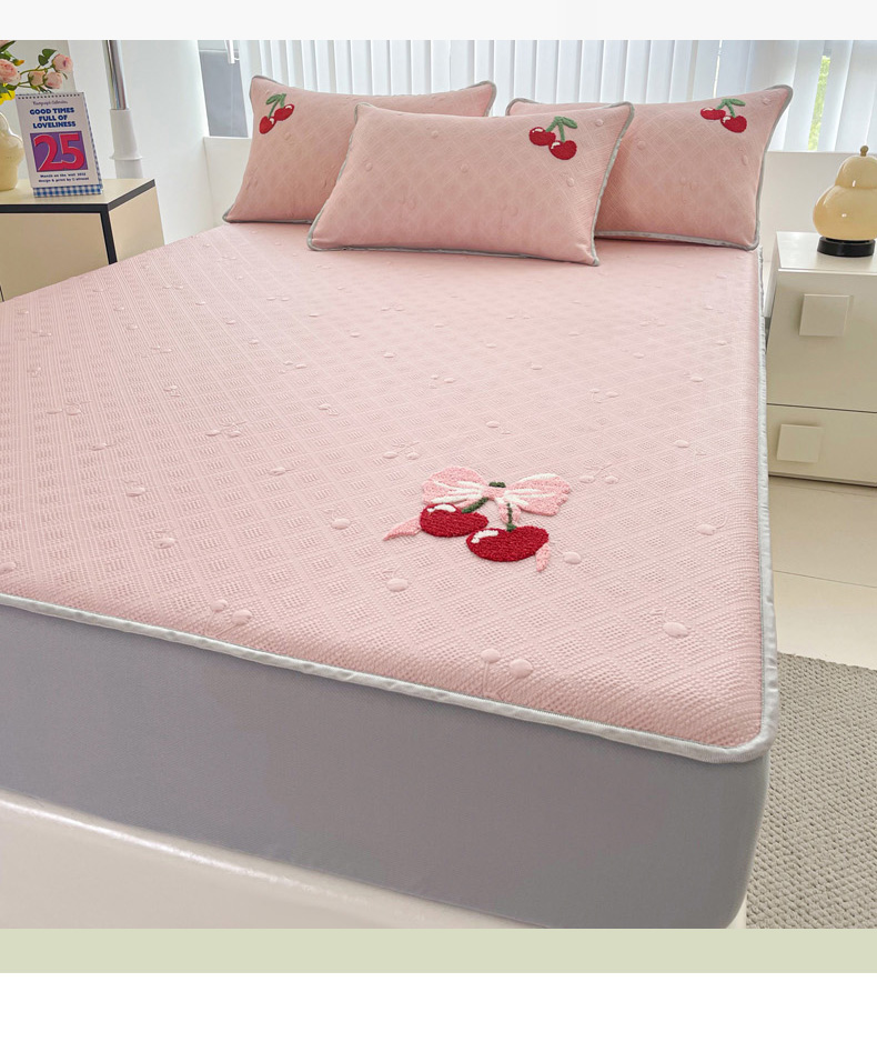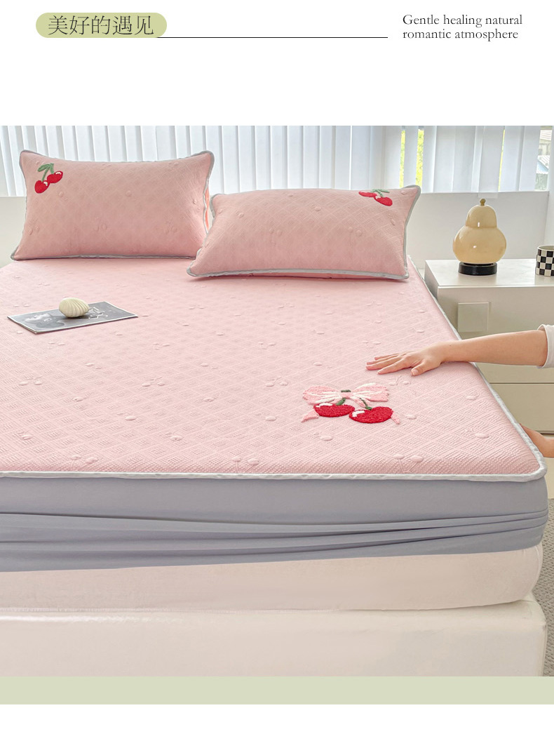恋佳居2025新款A类乙伦PE凉豆豆毛巾绣床笠冰丝席(床笠款) 樱桃—粉