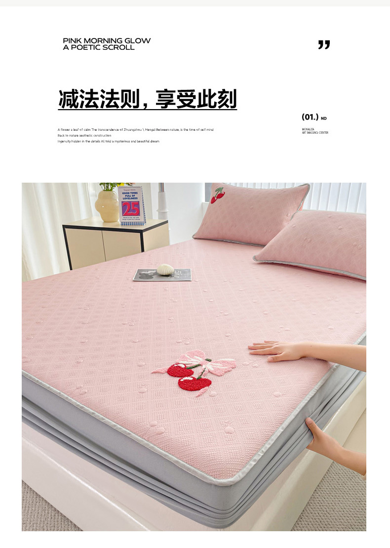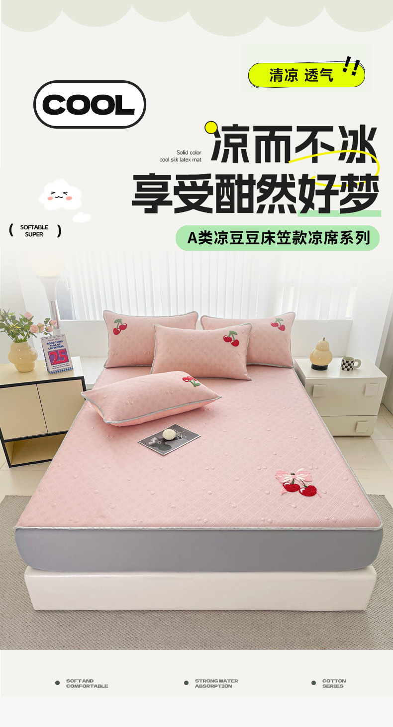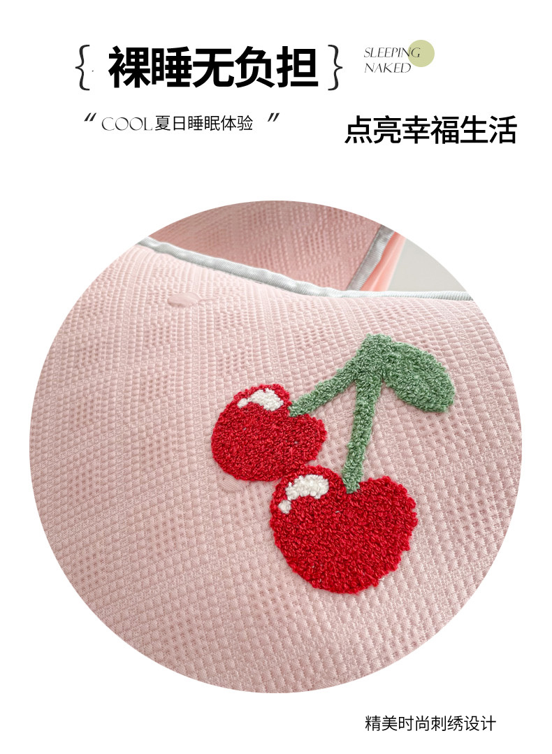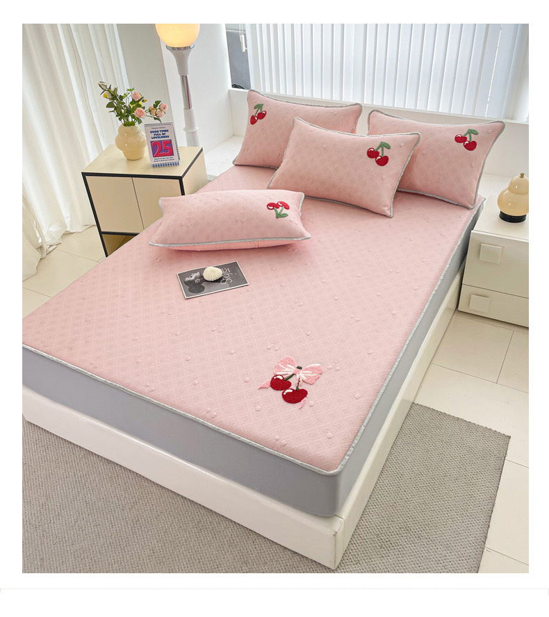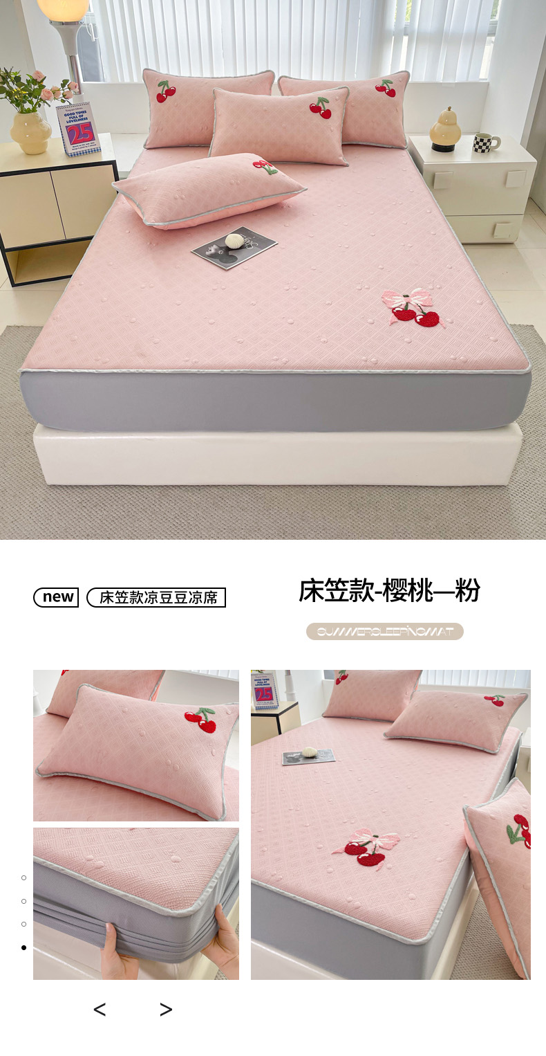 商品名称:恋佳居2025新款A类乙伦PE凉豆豆毛巾绣床笠冰丝席(床笠款) 樱桃—粉