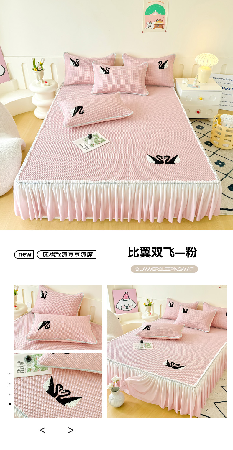 (总)恋佳居2025新款A类乙伦PE凉豆豆毛巾绣仙女风冰丝席,比翼双飞—粉,比翼双飞—灰,比翼双飞—卡其,比翼双飞—蓝,比翼双飞—绿,樱桃—豆绿,樱桃—粉,樱桃—灰,樱桃—蓝,樱桃—绿