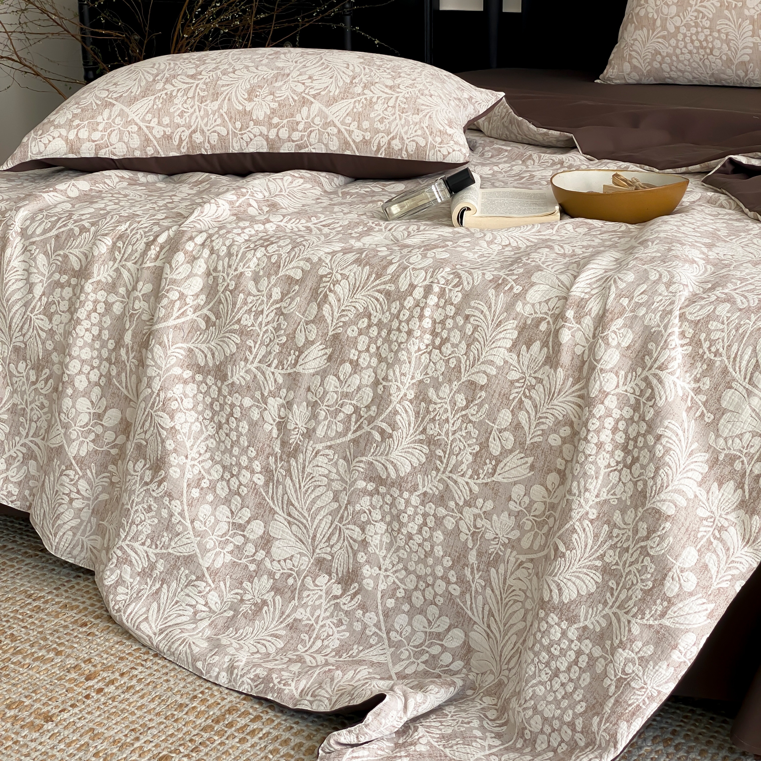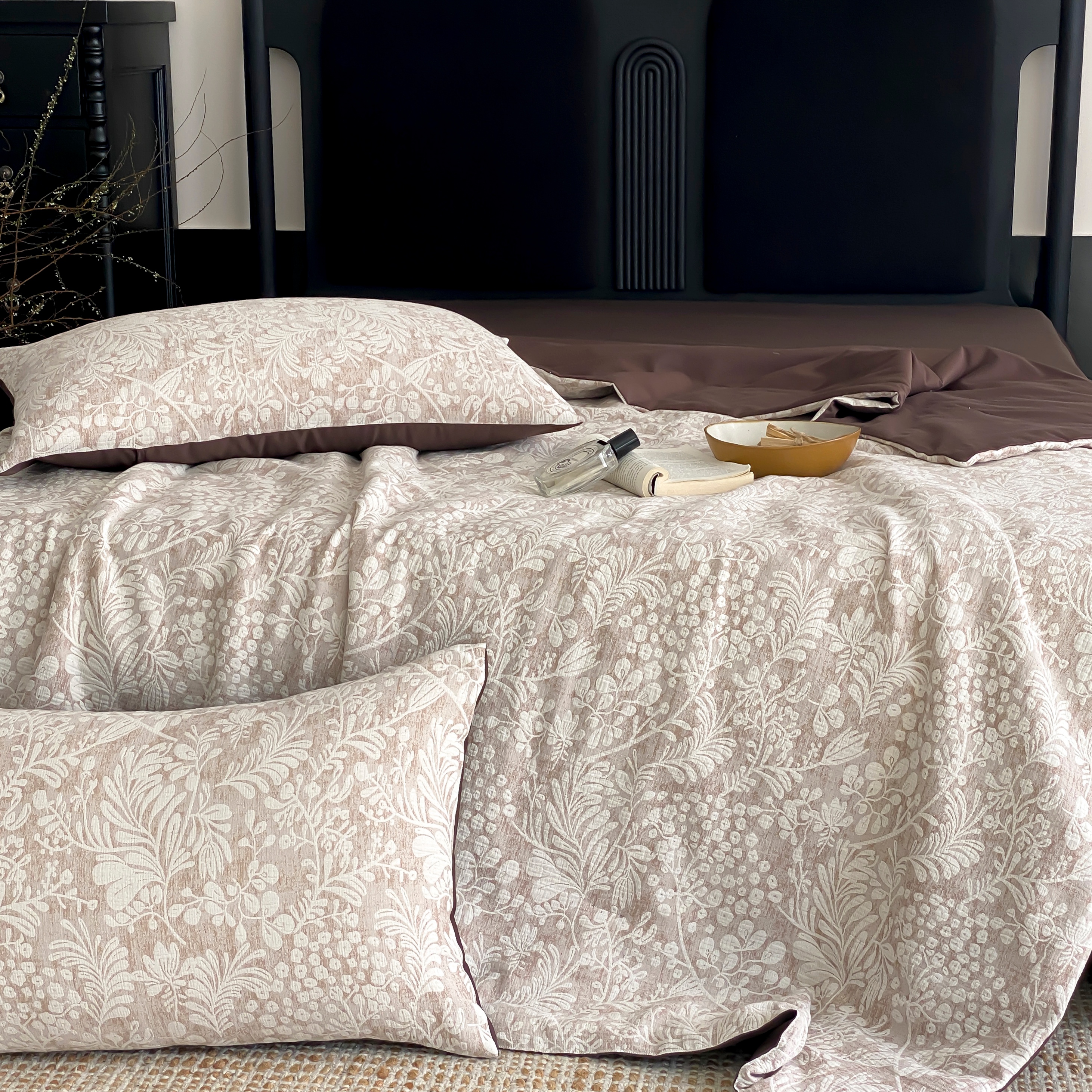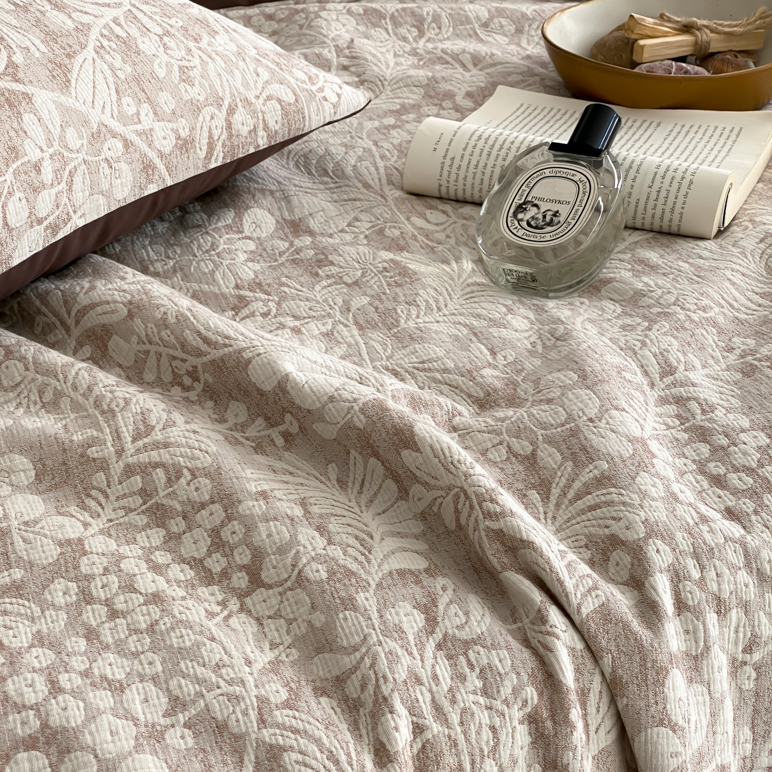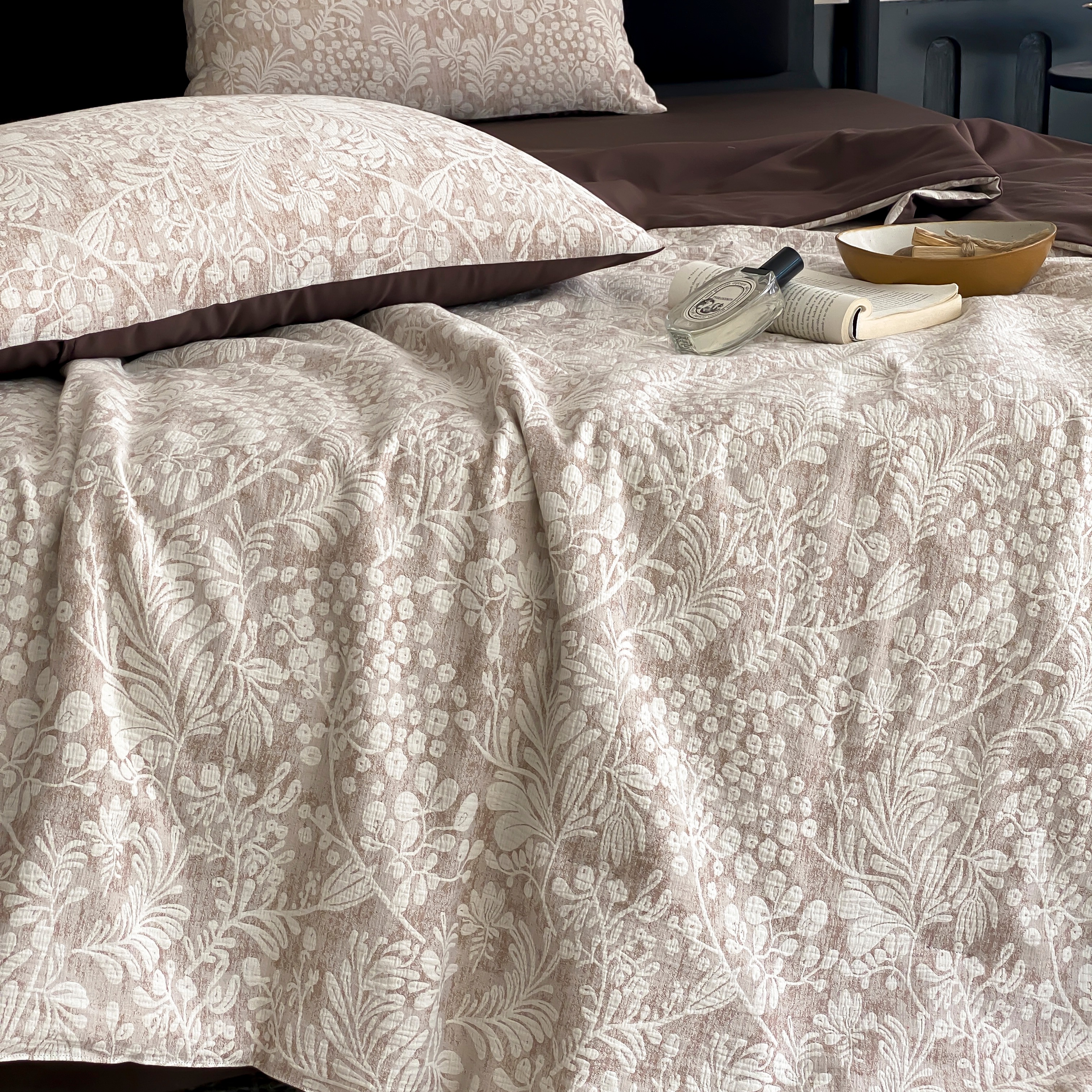 商品名称:赫帛 2025春夏新款全棉纯棉色织提花数码印花七草夏被夏凉被空调被 七草-咖色夏被