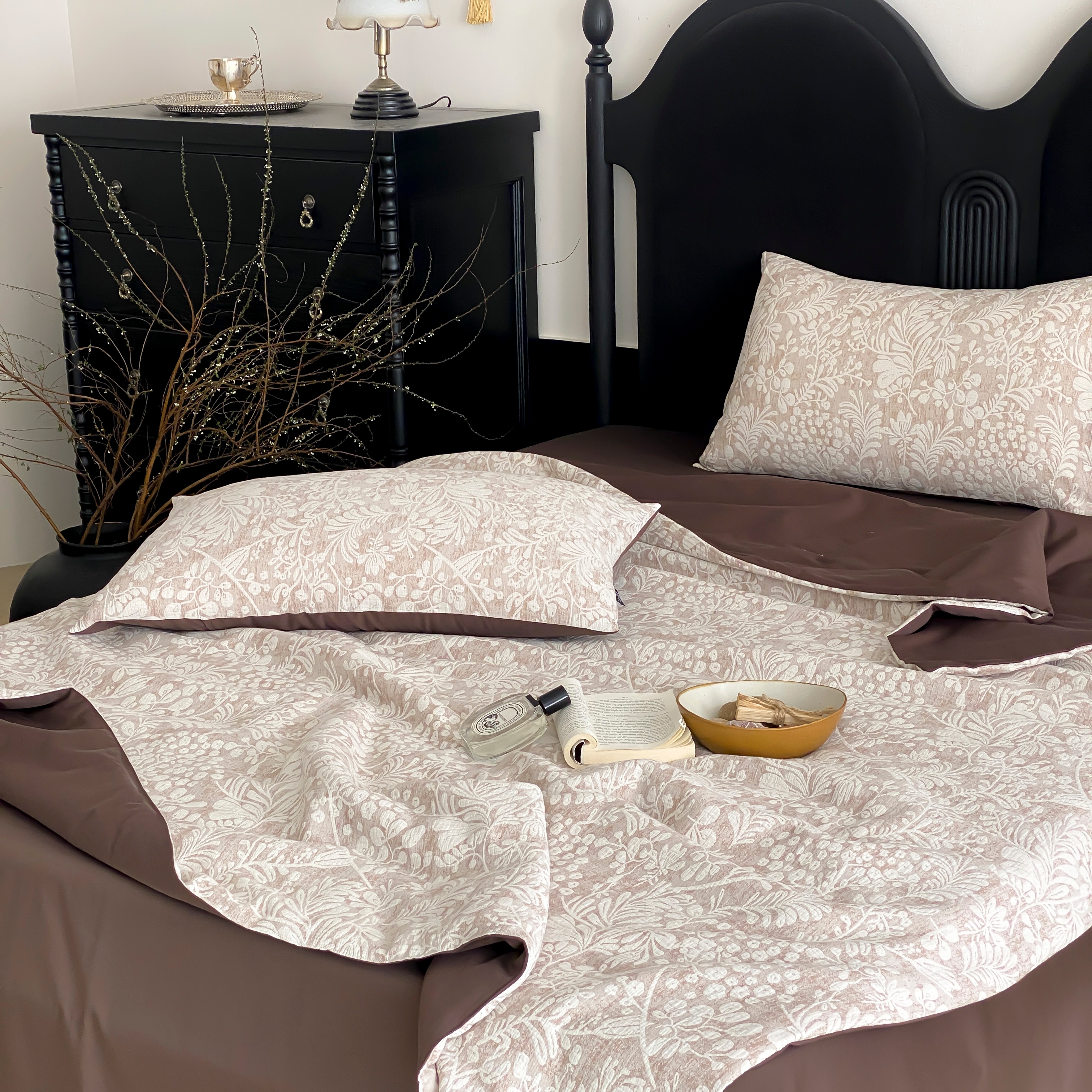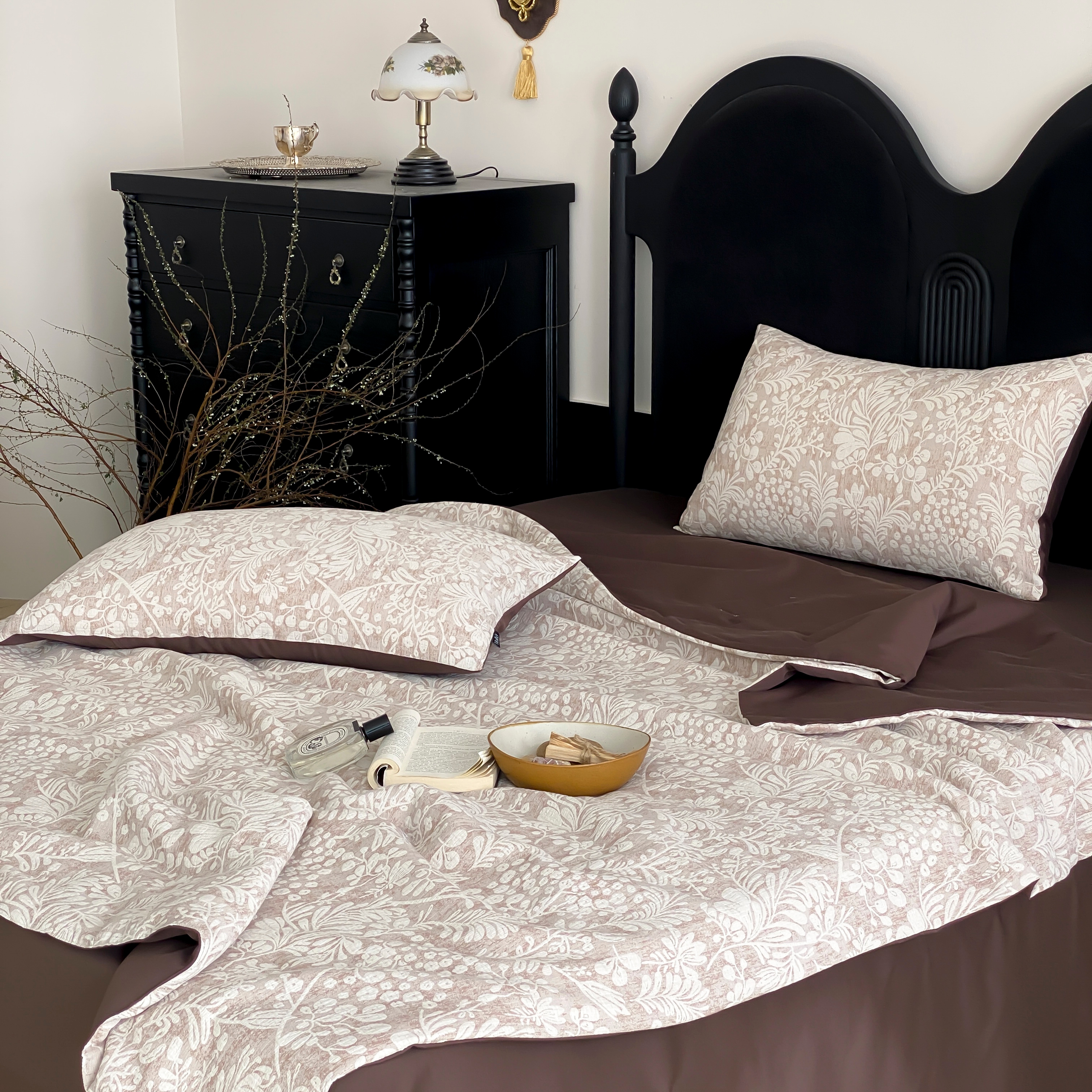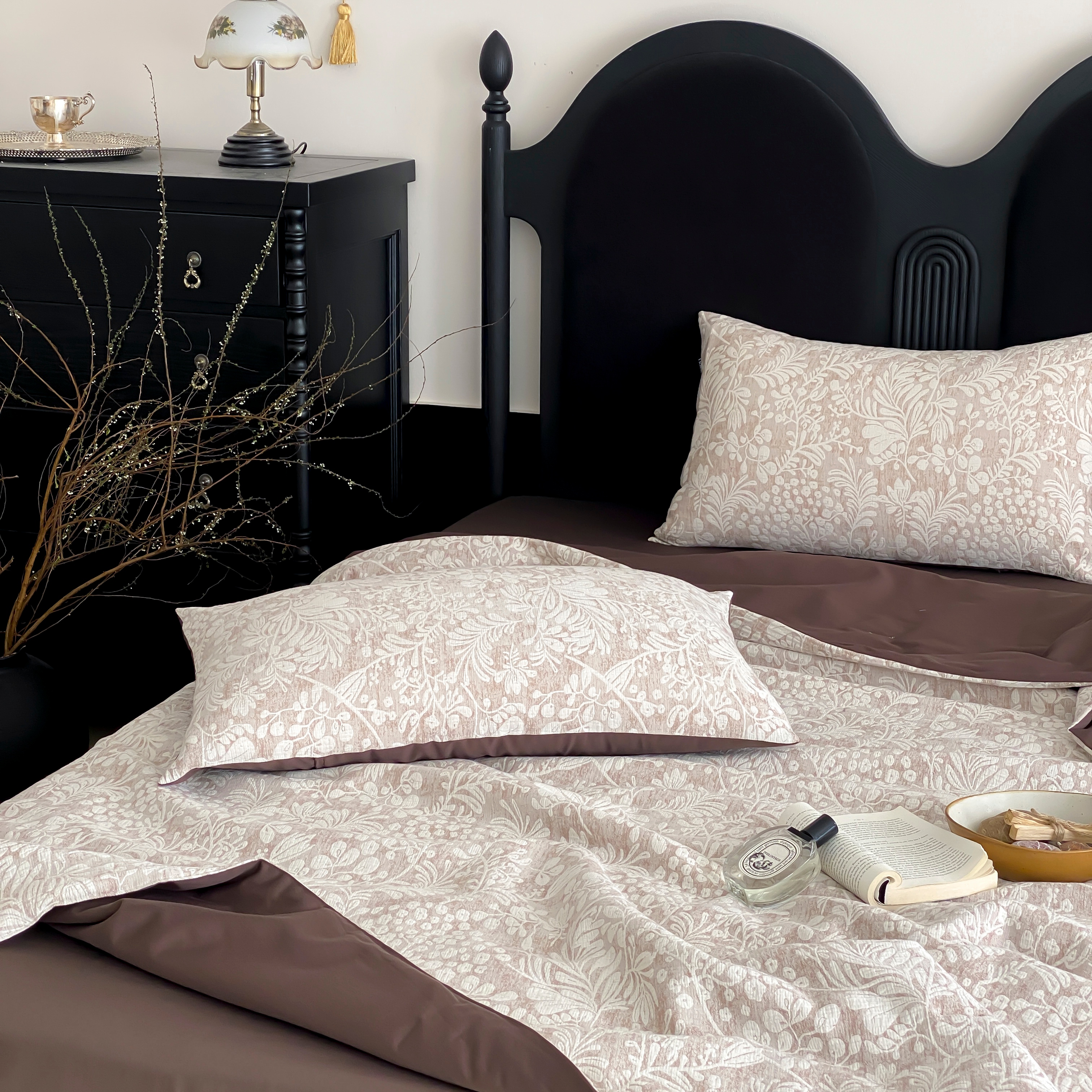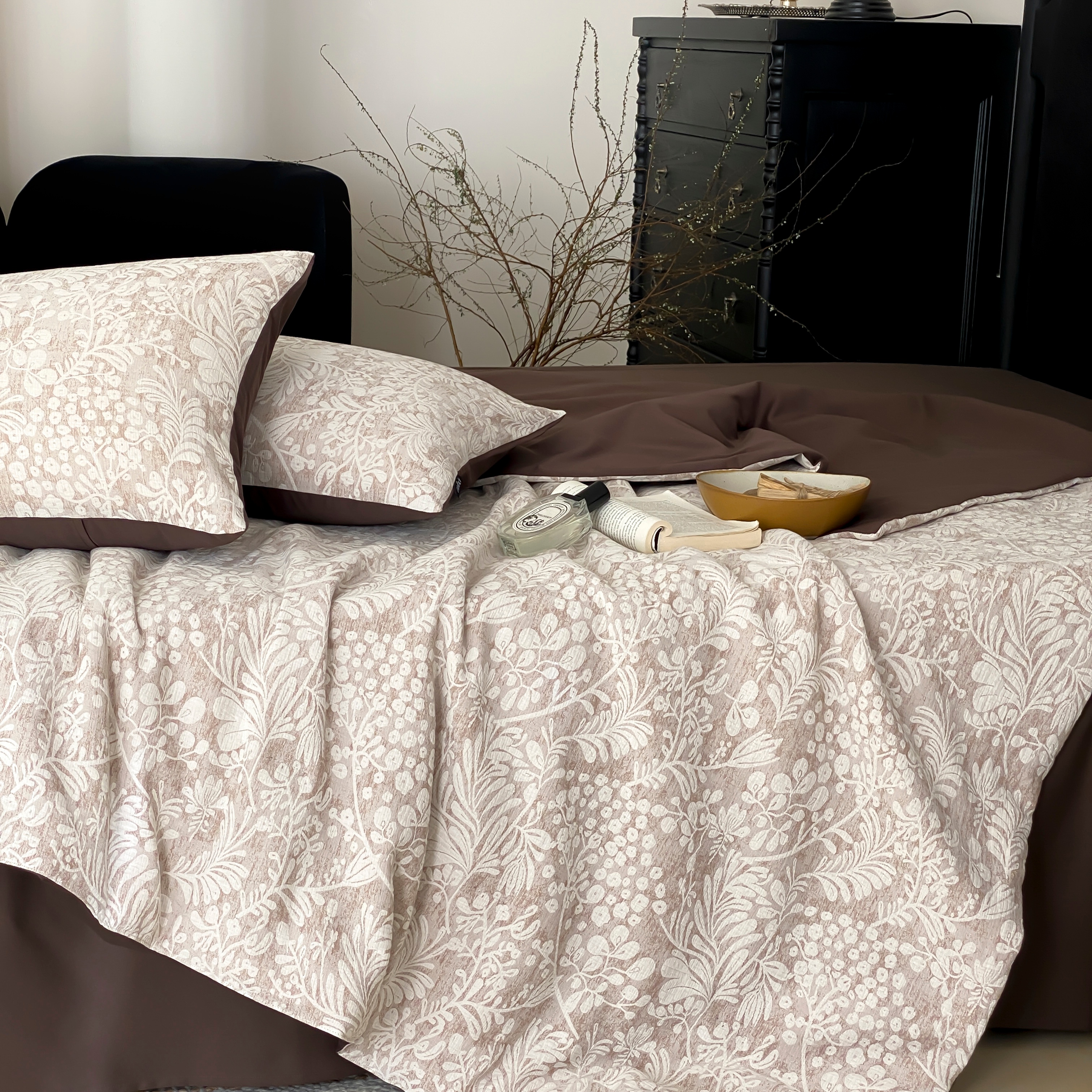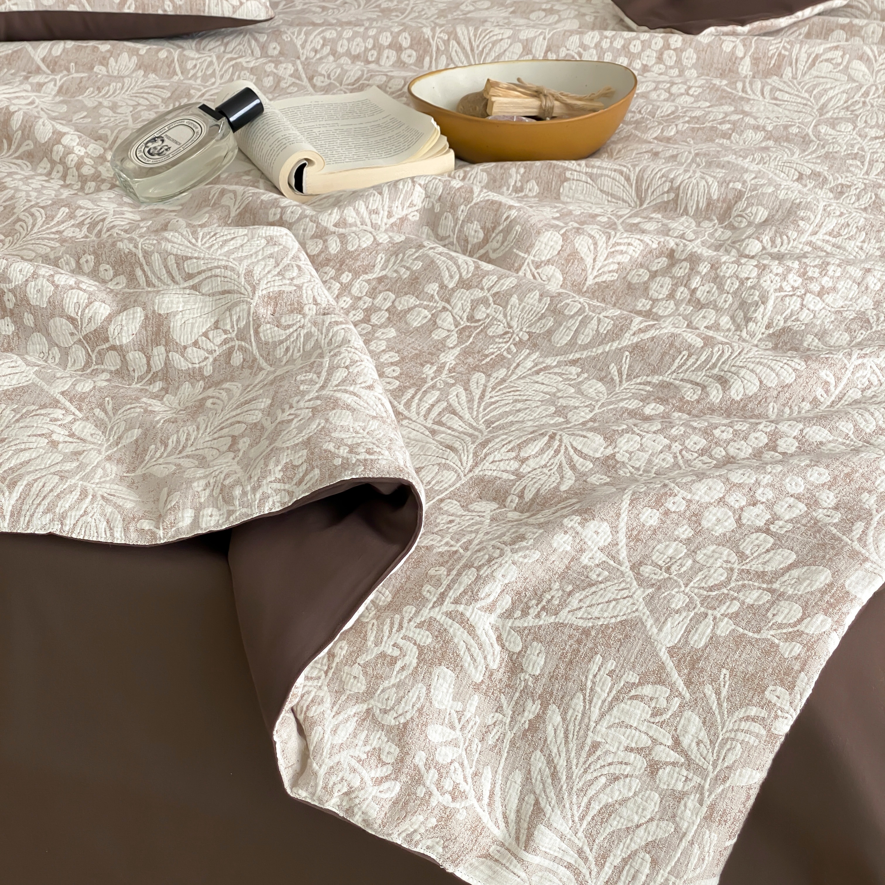 商品名称:赫帛 2025春夏新款全棉纯棉色织提花数码印花七草夏被夏凉被空调被 七草-咖色夏被
