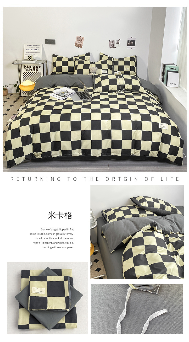 当前位置: 91家纺网 > 商品网购 > 床品套件 > 四件套 > 雅阁尔家纺2025新款无印良品风棋盘格贴标四件套 米卡格