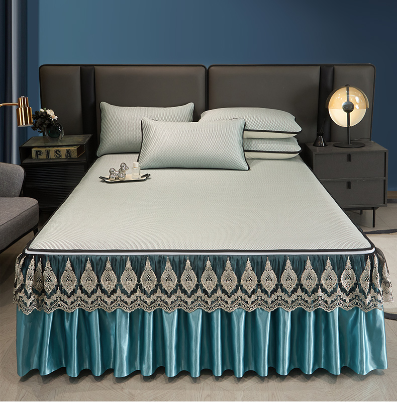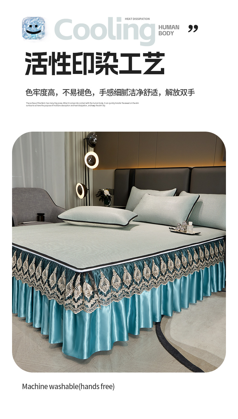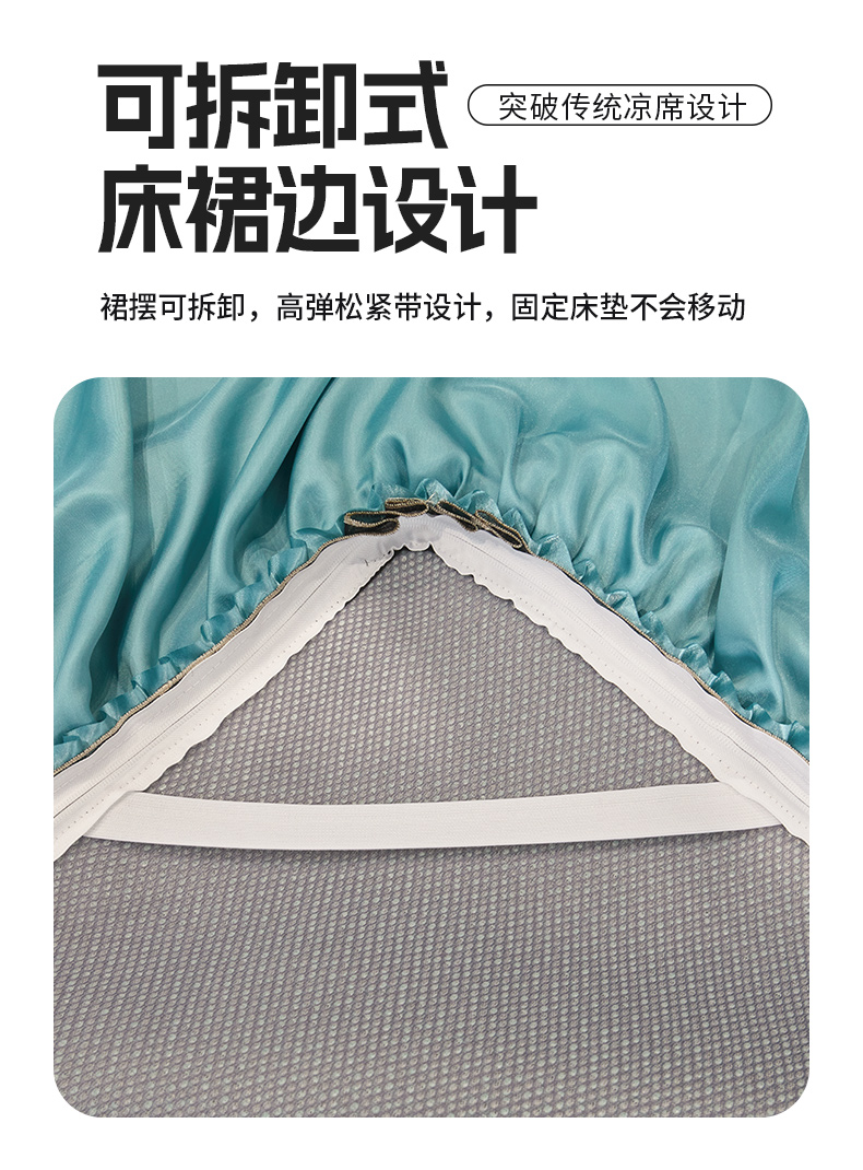 • 91家纺网 家纺一手货源 找家纺 恋尚 2025新款可拆卸床裙款冰藤凉席 冰藤床裙凉席- 柏姬水绿(控价198起)