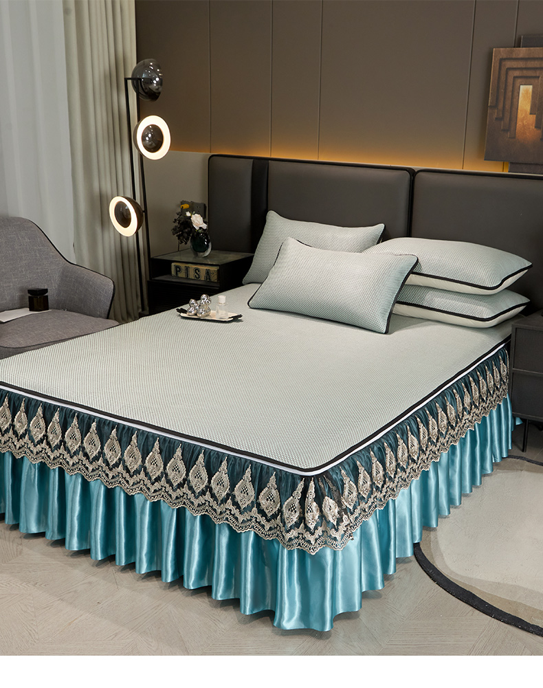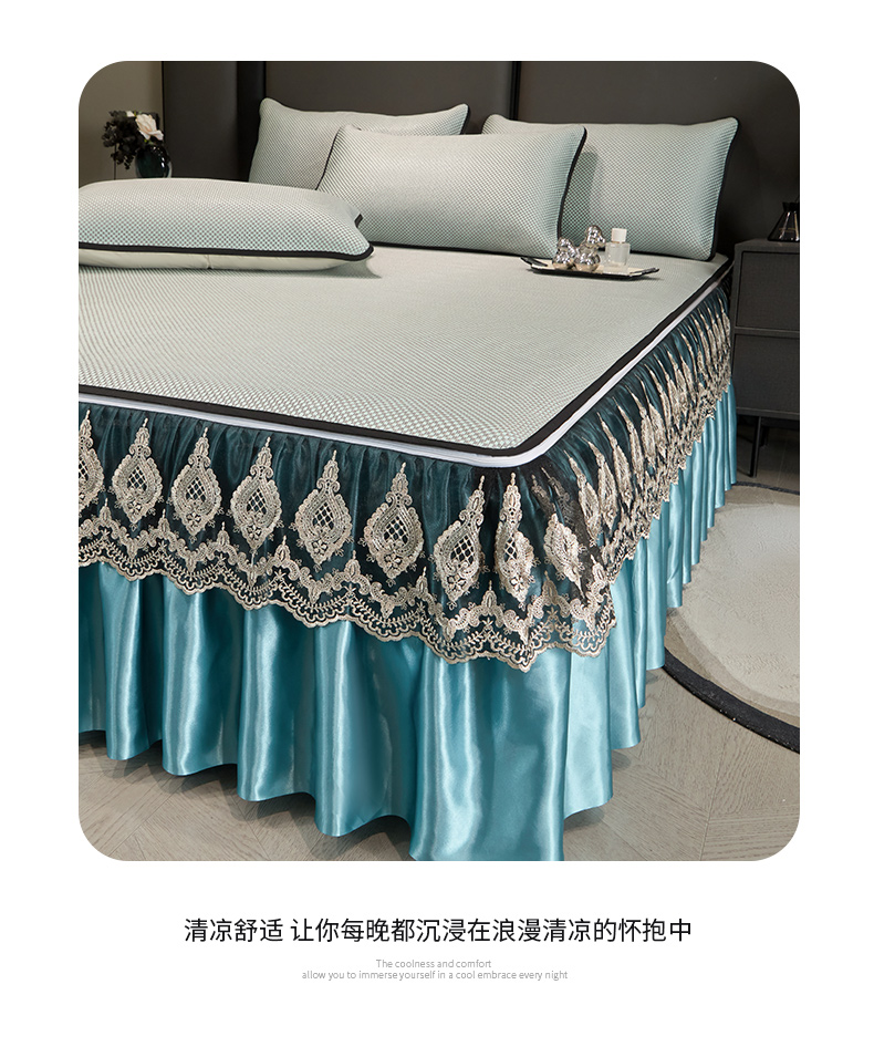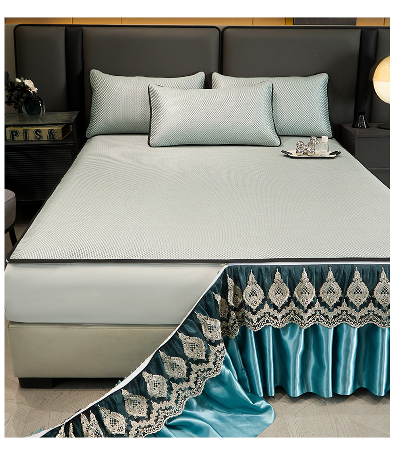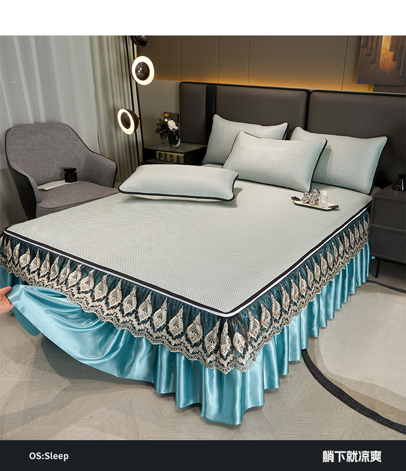 恋尚 2025新款可拆卸床裙款冰藤凉席 冰藤床裙凉席- 柏姬水绿(控价198起)
