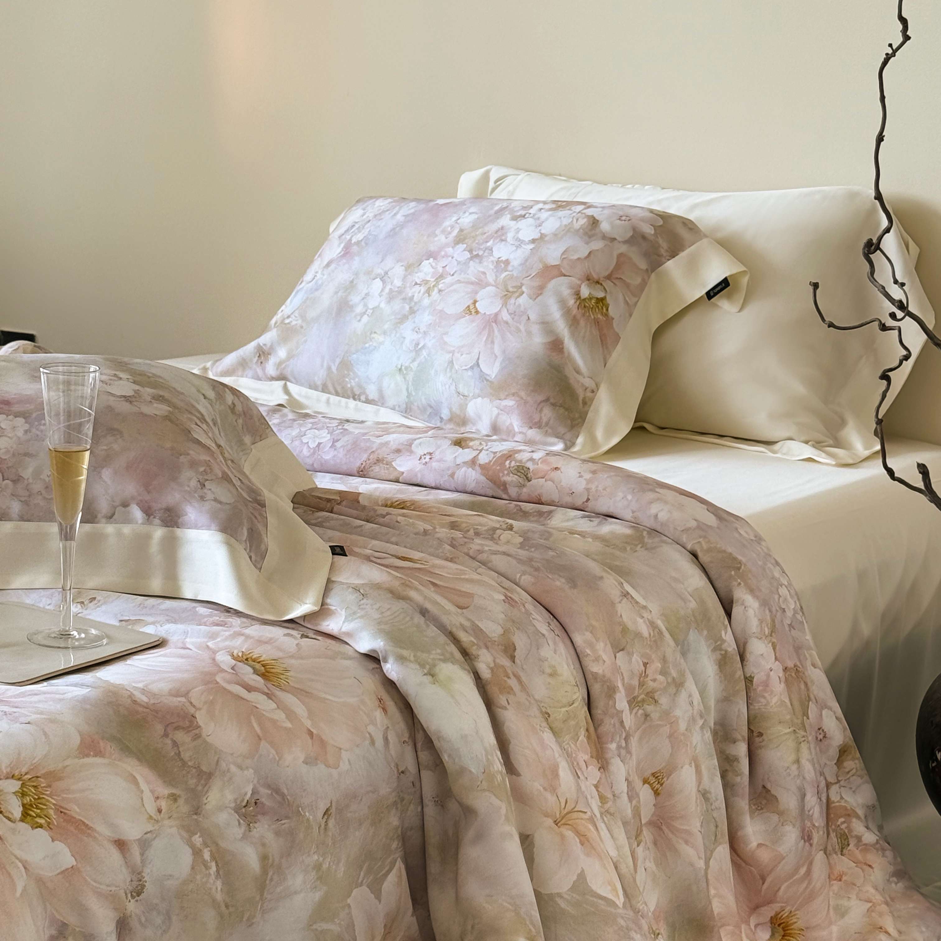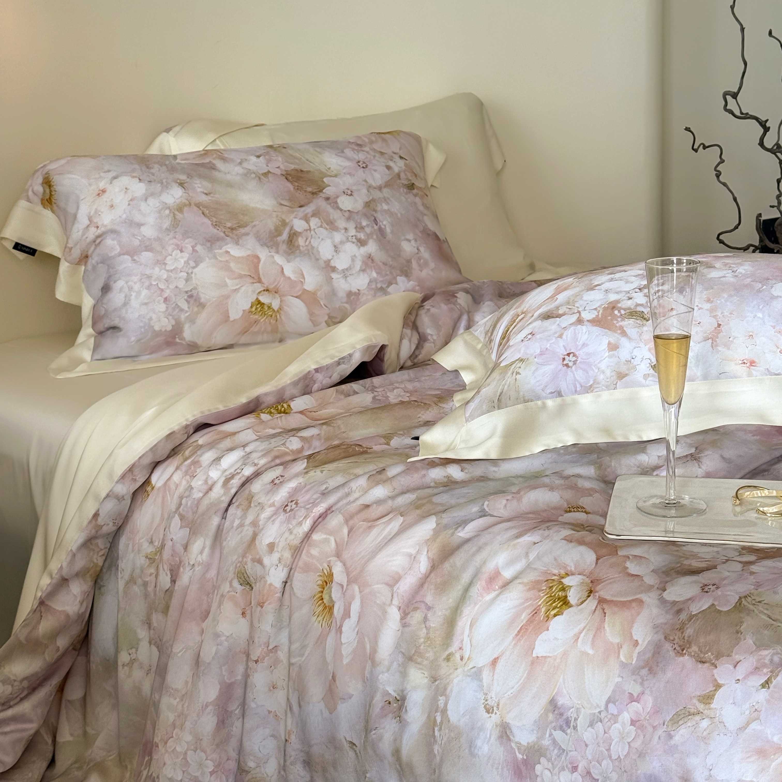 馨蕊家居 2025新款春夏新品天丝印花80SLF奥地利兰精天丝四件套-初见 天丝初见-蔷薇粉