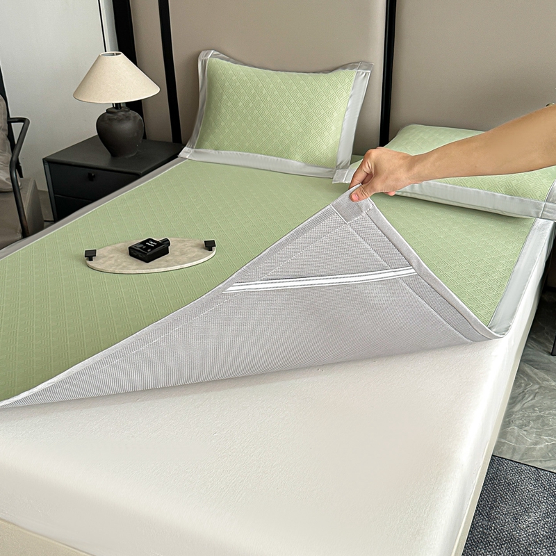 (总)紫碧螺家纺 2025新款冰感针织空调垫凉席席子,浅灰色,淡蓝色,嫩绿色,咖色
