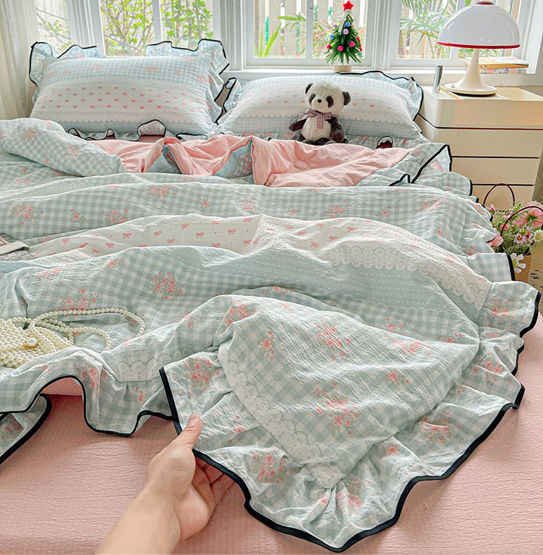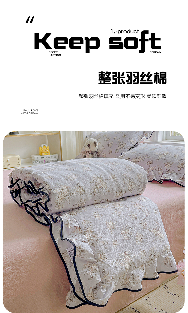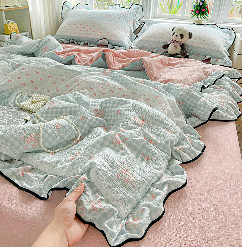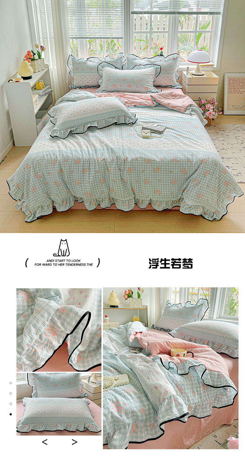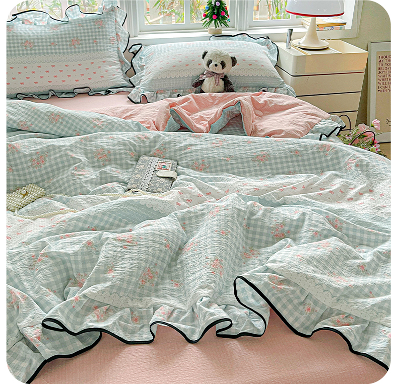 • 91家纺网 家纺一手货源 找家纺 暖芯优选 2025(优选)新款皱皱双层纱荷叶大花边夏被空调被夏凉被三件套 浮生若梦
