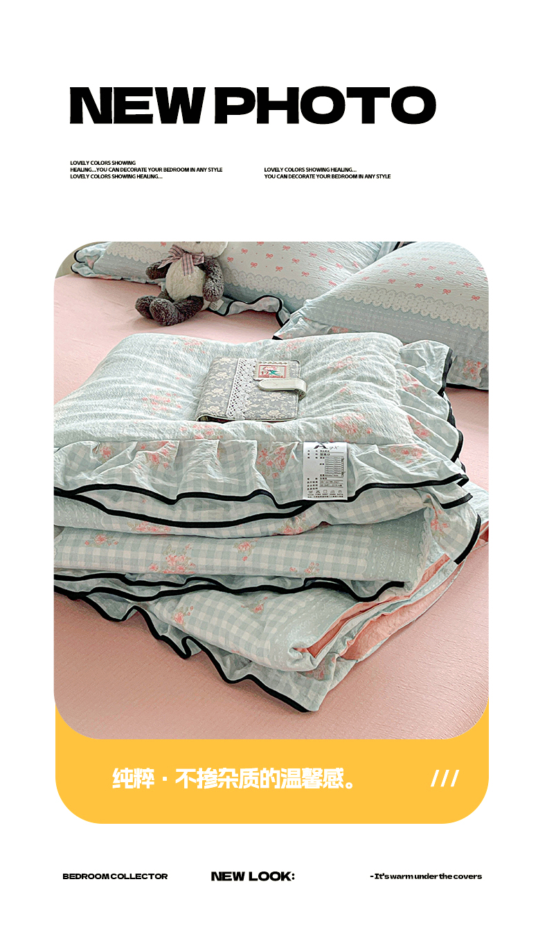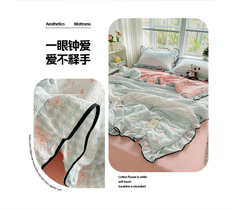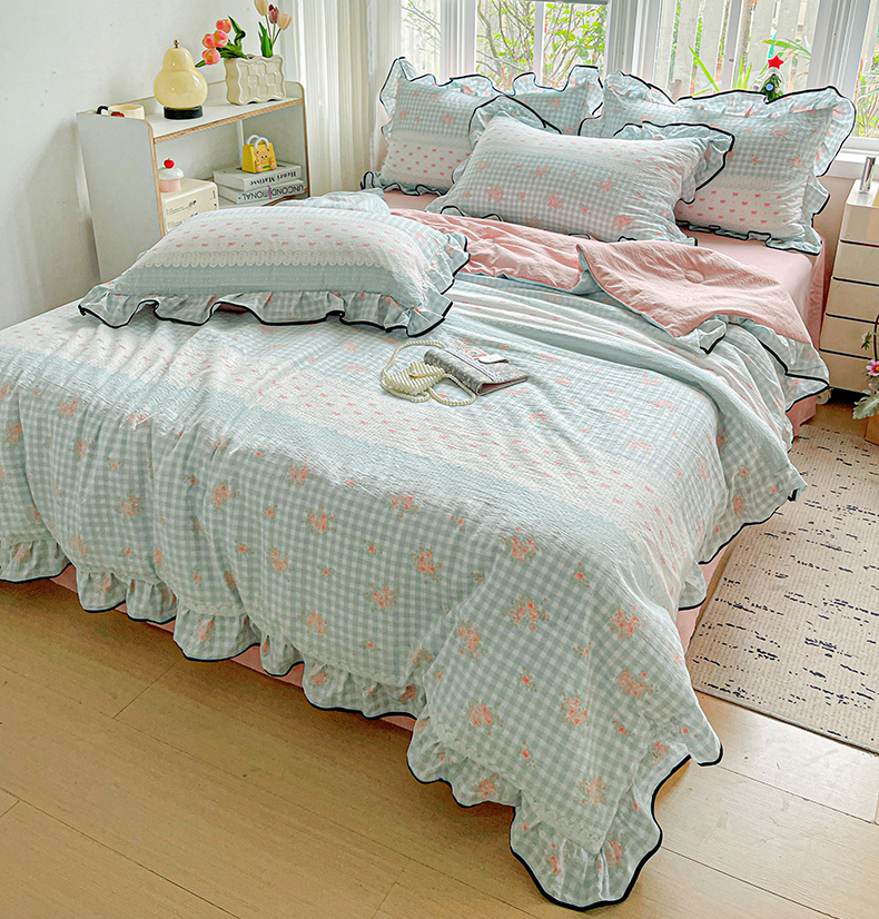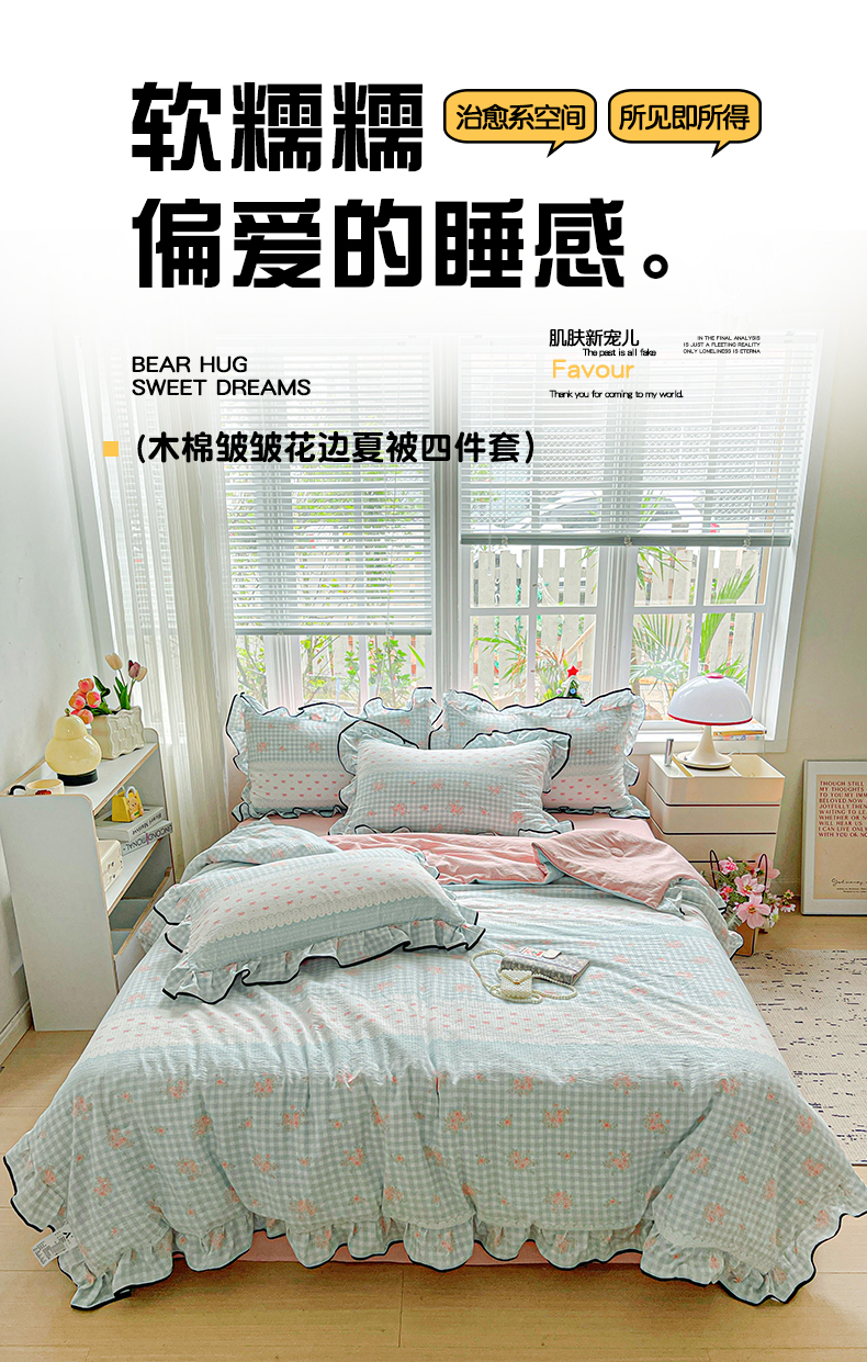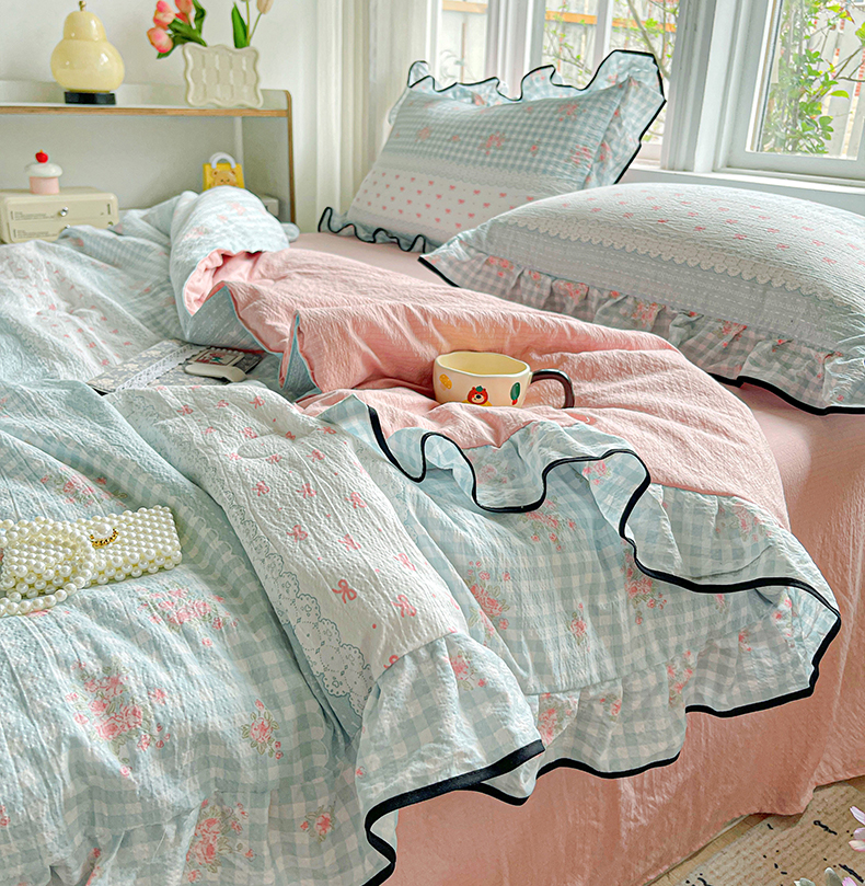 • 91家纺网 家纺一手货源 找家纺 暖芯优选 2025(优选)新款皱皱双层纱荷叶大花边夏被空调被夏凉被三件套 浮生若梦