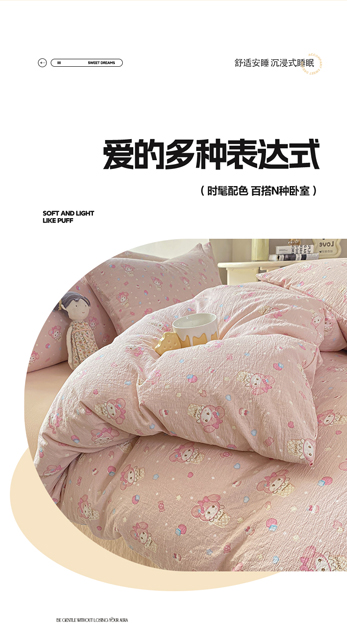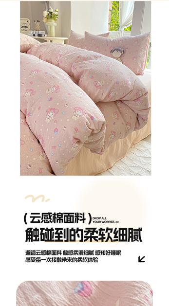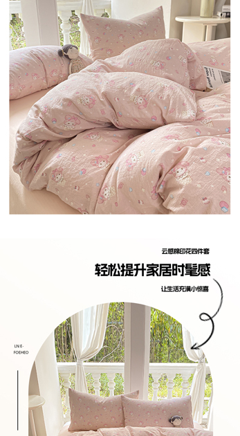 (总)韩巢家纺 2026新款水洗棉花边款四件套,灰蒙小狗【大花边款】,春日与玫瑰【大花边款】,繁花似梦【大花边款】,花时宇间【大花边款】,久期诗朵-黄【大花边款】,可可腊肠犬【大花边款】,奶油樱桃【大花边款】,软糖猫【大花边款】,甜樱恋曲【大花边款】,温暖粉心【大花边款】,小花野-紫【大花边款】,小熊冰淇淋【大花边款】,星梦蝶结【大花边款】,幸运可爱兔【大花边款】,摘樱桃的小熊【大花边款】