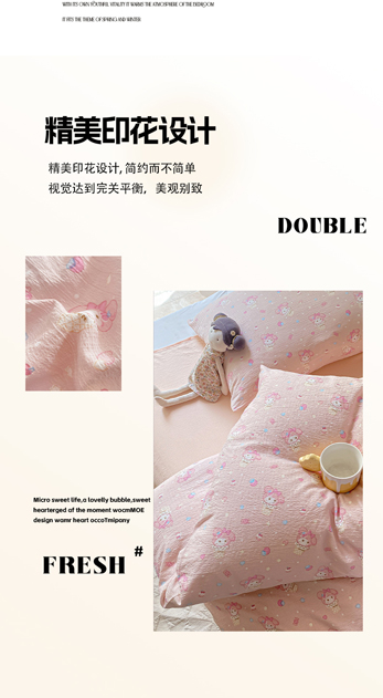 • 91家纺网 家纺一手货源 找家纺 韩巢家纺 2025热销新款云感双层纱单件被套-(提供卖家秀) 小美冰激凌