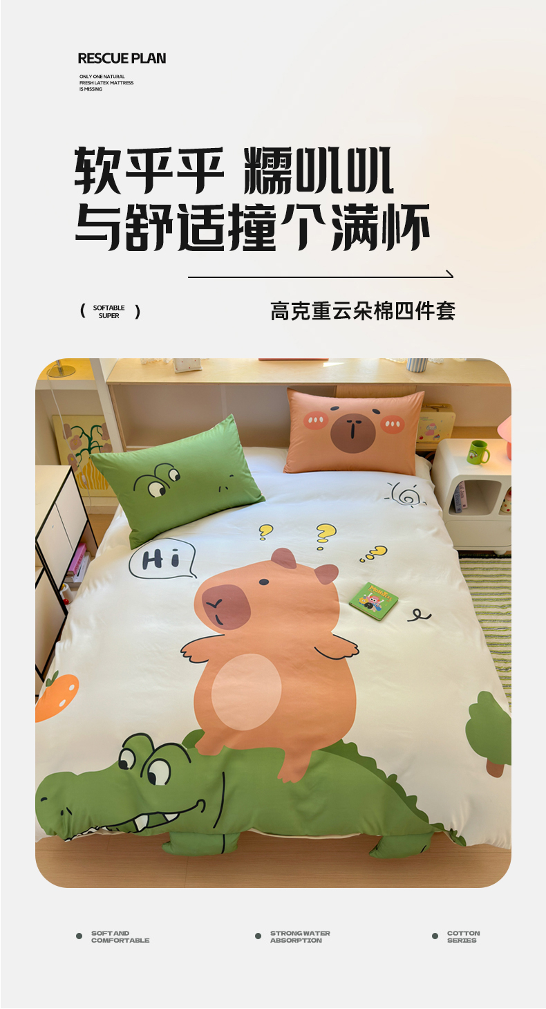 当前位置: 91家纺网 > 商品网购 > 床品套件 > 四件套 > 其它四件套 > 一霖家纺 2025新款高克重云朵棉大版数码带脚丫四件套 大版-小浣熊