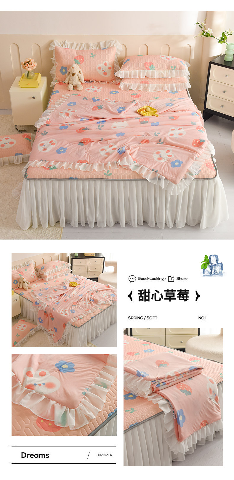 当前位置: 91家纺网 > 商品网购 > 床品套件 > 四件套 > 夏被四件套 > 悦织湾家纺 2025新款A类凉感丝床裙款乳胶凉席席子夏被夏凉被空调被四件套 玫瑰情缘