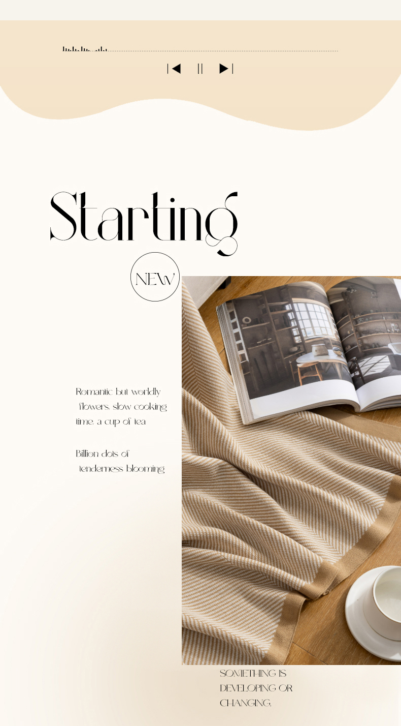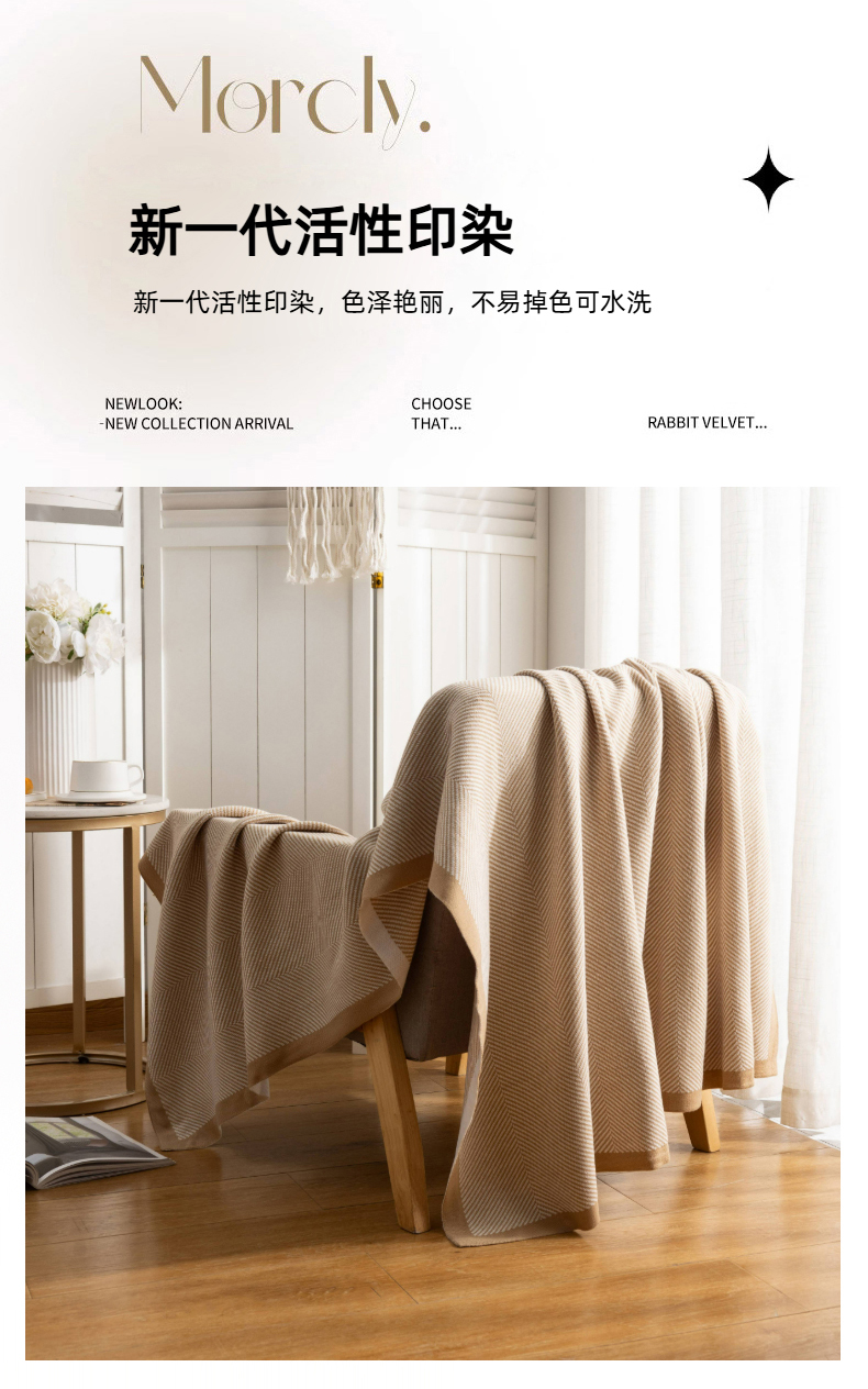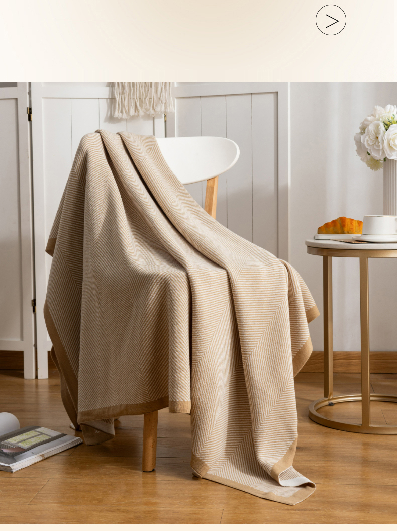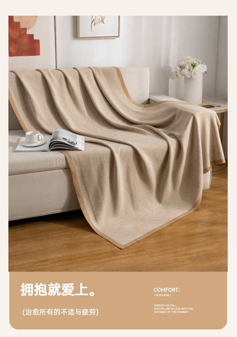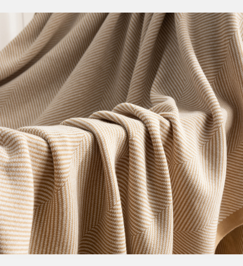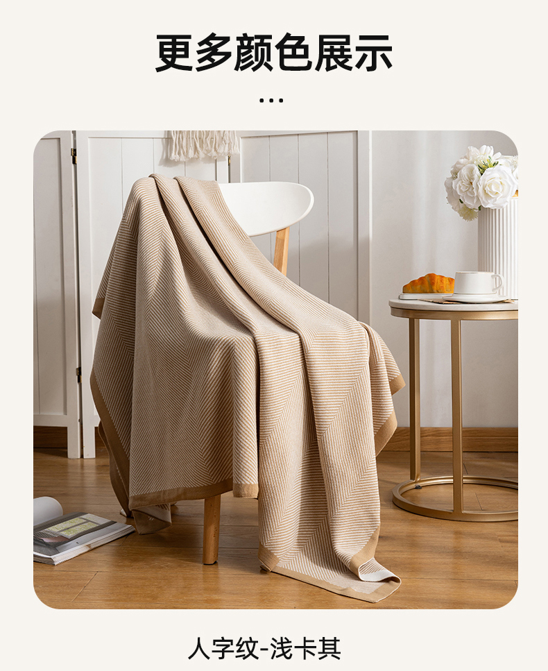 商品名称:肖恩毯业 2025新款轻奢晴纶针织毯人字纹回字纹休闲时尚盖毯航空毯毯子毛毯 人字纹浅卡其