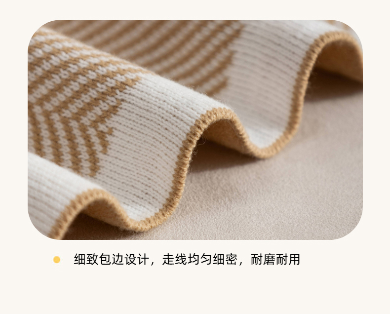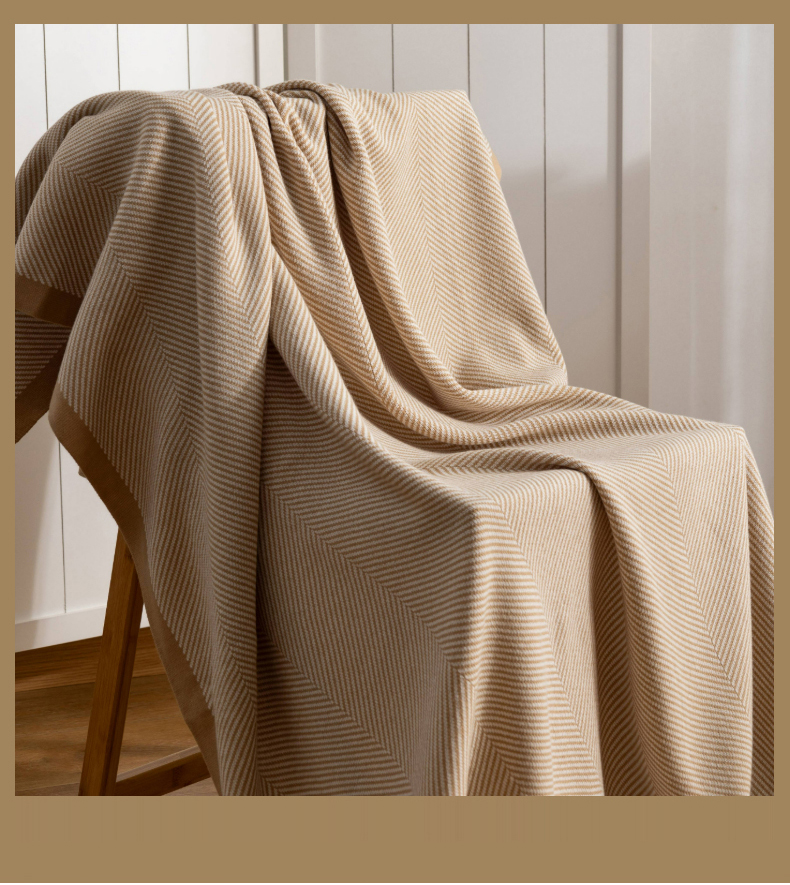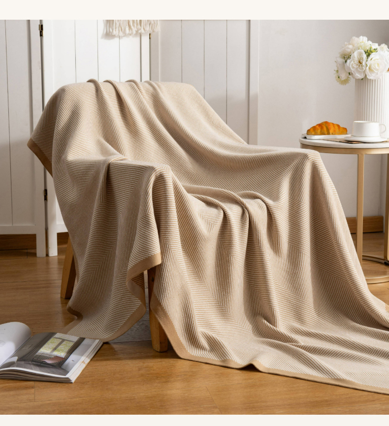 肖恩毯业 2025新款轻奢晴纶针织毯人字纹回字纹休闲时尚盖毯航空毯毯子毛毯 人字纹浅卡其