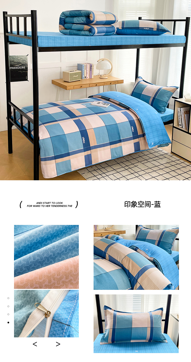 当前位置: 91家纺网 > 商品网购 > 床品套件 > 三件套 > 锦润 2025新款印花12868全棉学生宿舍三件套纯棉六件套印象空间-蓝
