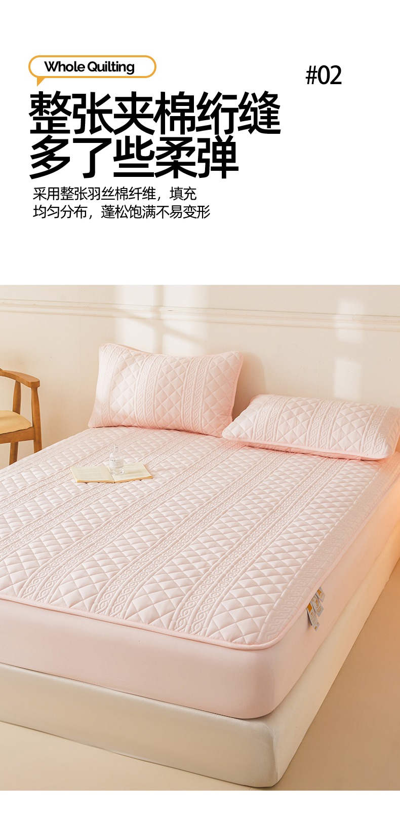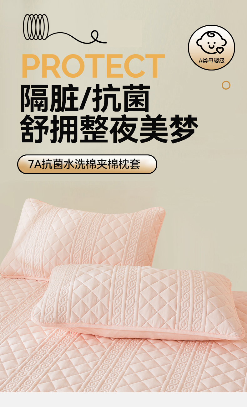 商品名称:雯豆家纺 2025新款简爱防水款夹棉加厚枕套单只一对装水洗棉枕套 梵可-密合粉