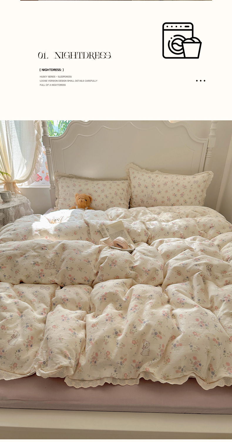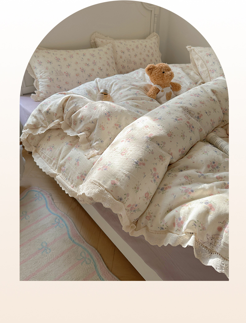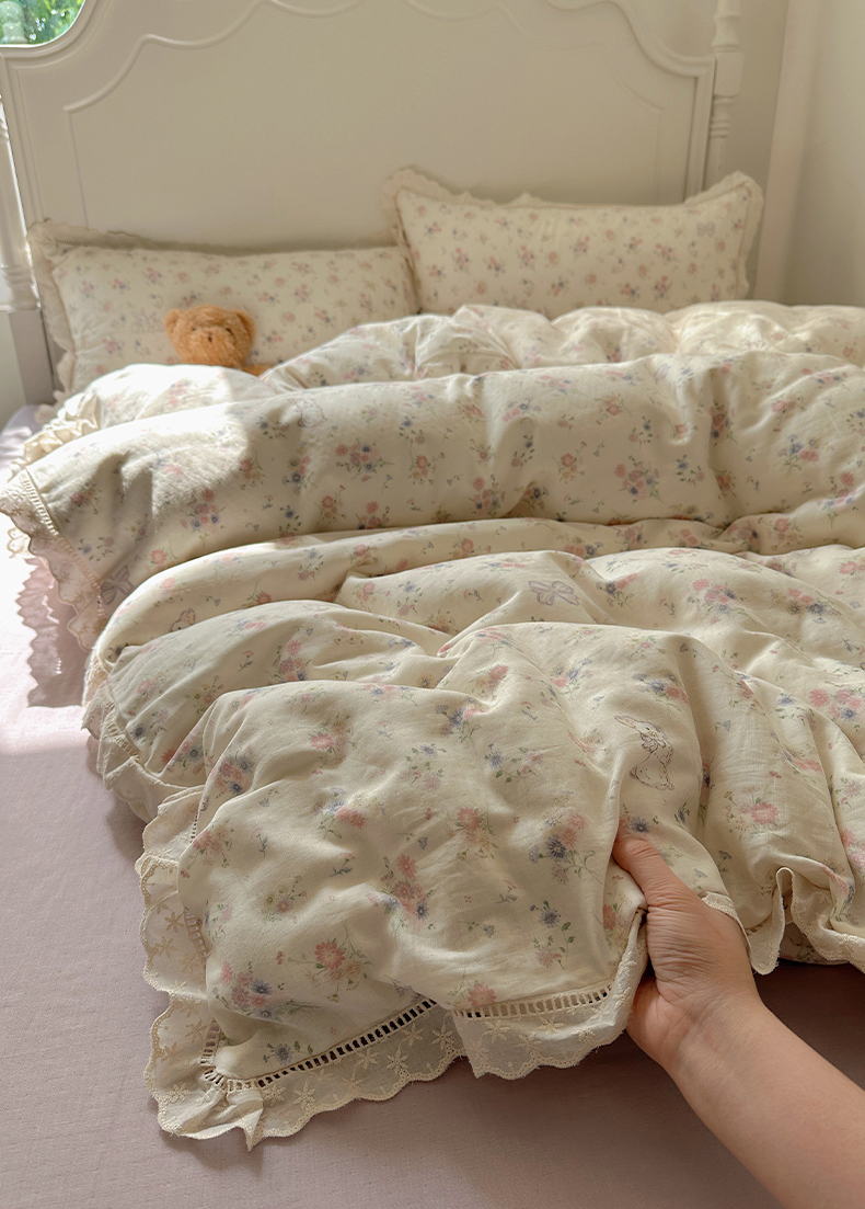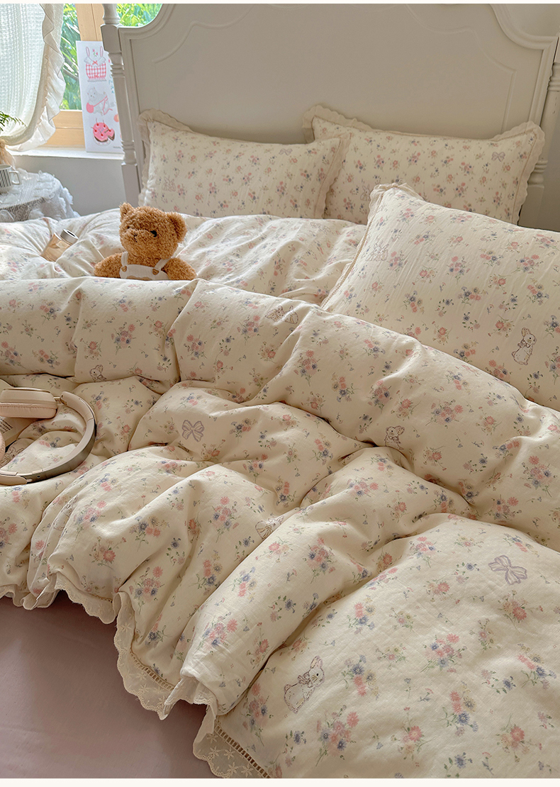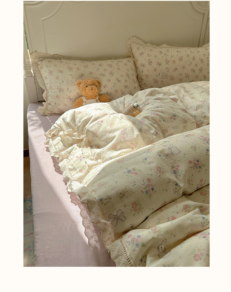 当前位置: 91家纺网 > 商品网购 > 床品套件 > 四件套 > 全棉普通四件套 > 瑞莱 2025新款全棉纯棉A类有氧双层纱镂空花边四件套 镂空-萝莉兔