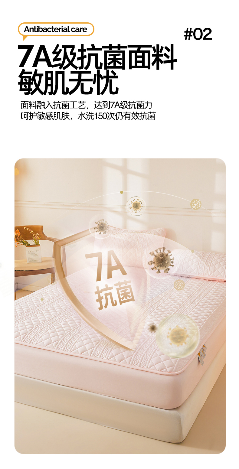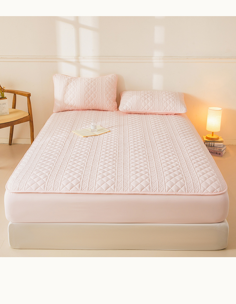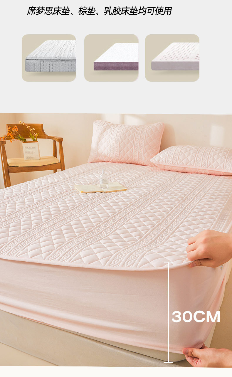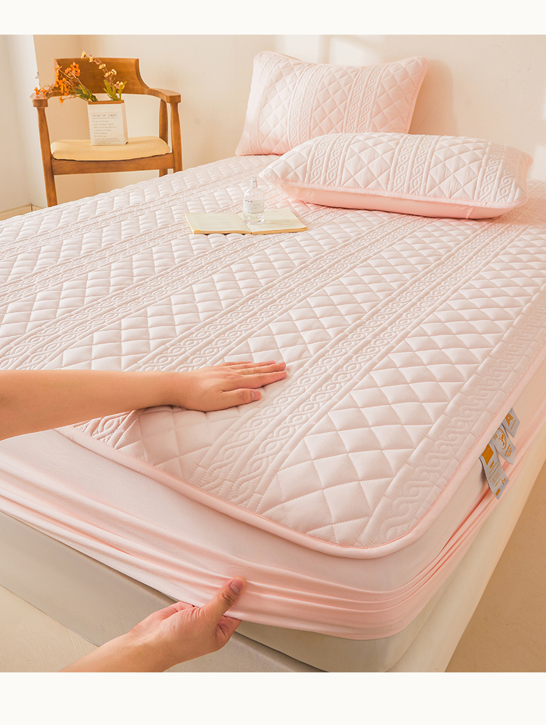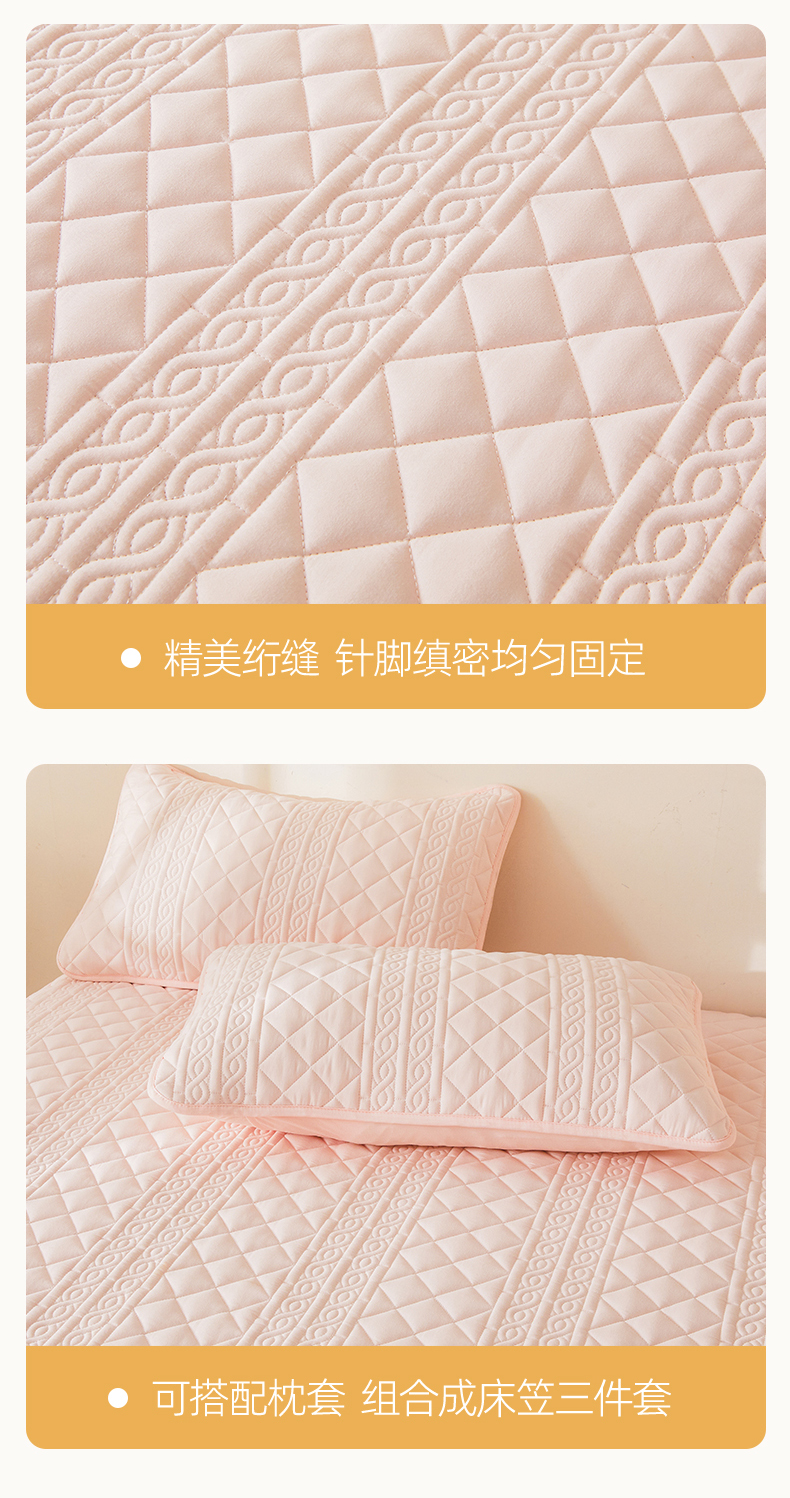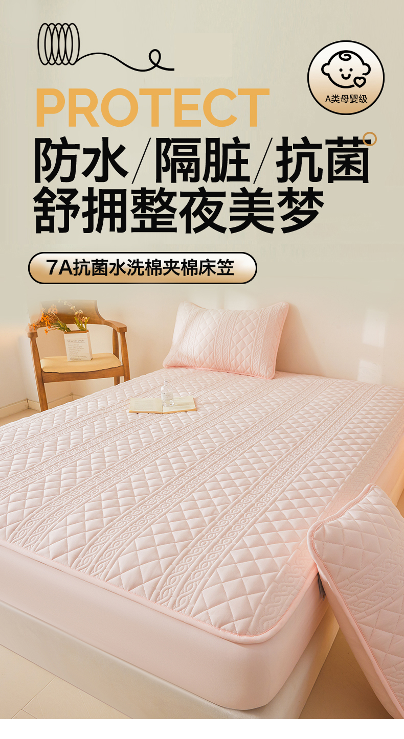 • 91家纺网 家纺一手货源 找家纺 雯豆家纺 2025新款梵可A类夹棉防水床笠三件套水洗棉磨毛床单保护套 梵可-密合粉