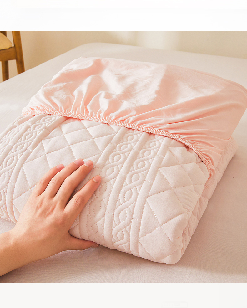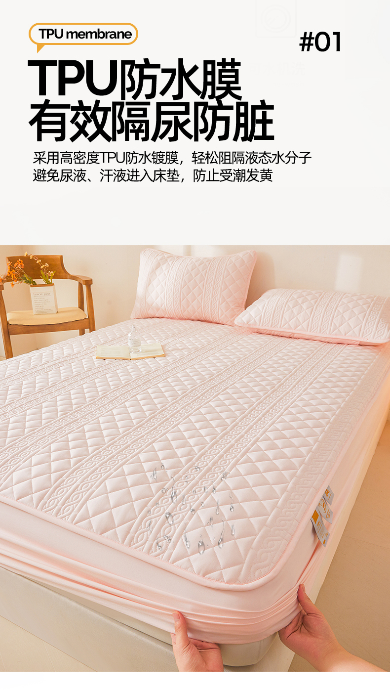 雯豆家纺 2025新款梵可A类夹棉防水床笠三件套水洗棉磨毛床单保护套 梵可-密合粉