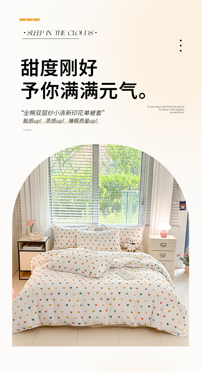 (总)芙绣家纺 2025新款A类全棉双层纱小清新印花单被套学生单被套单枕套,春风里,繁花似锦,花间絮语,假日甜心猫-粉色,假日甜心猫-米白,漫天心,蔷薇梦境,十里桃花,甜心格格,组合图仅供参考