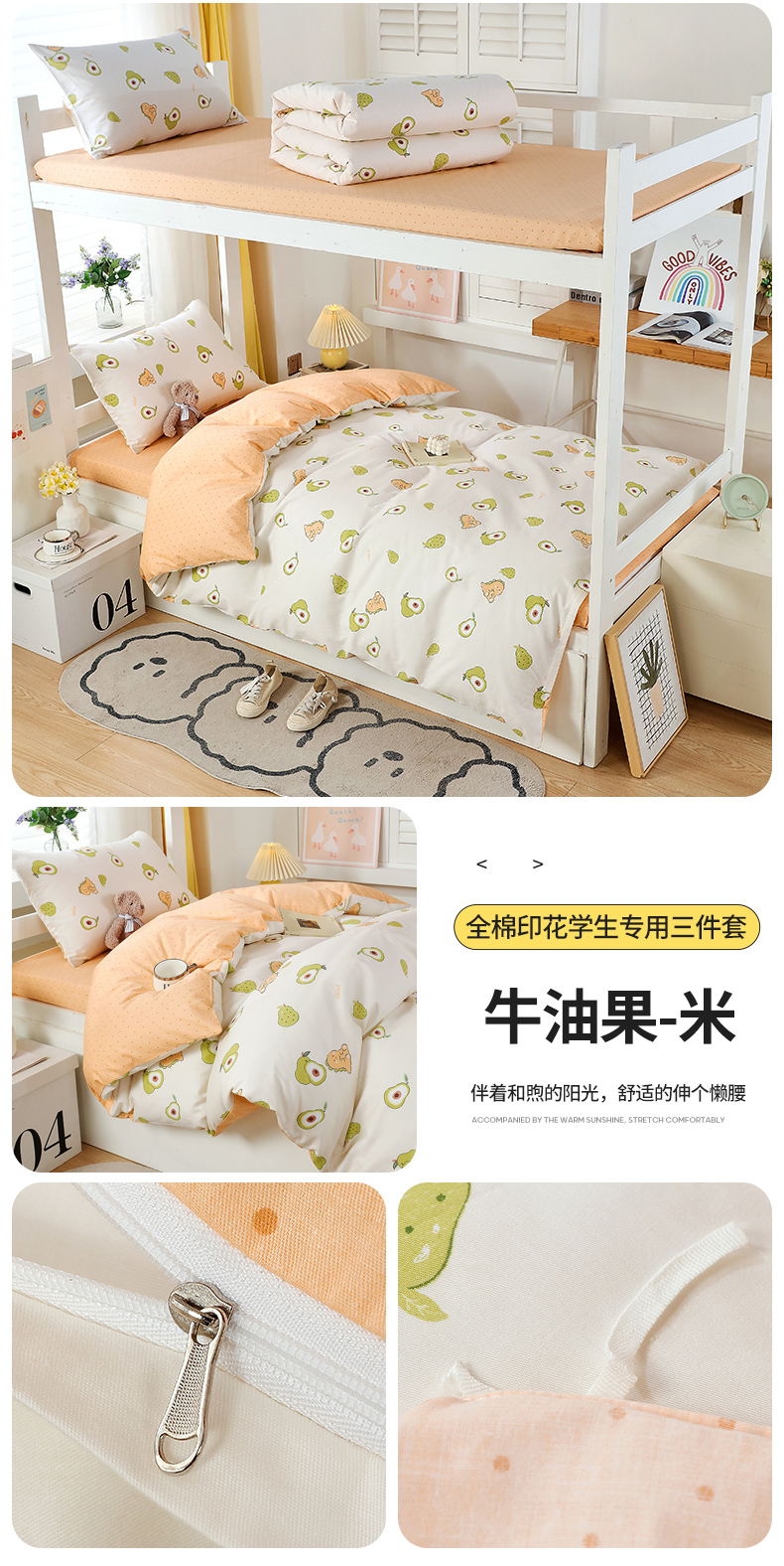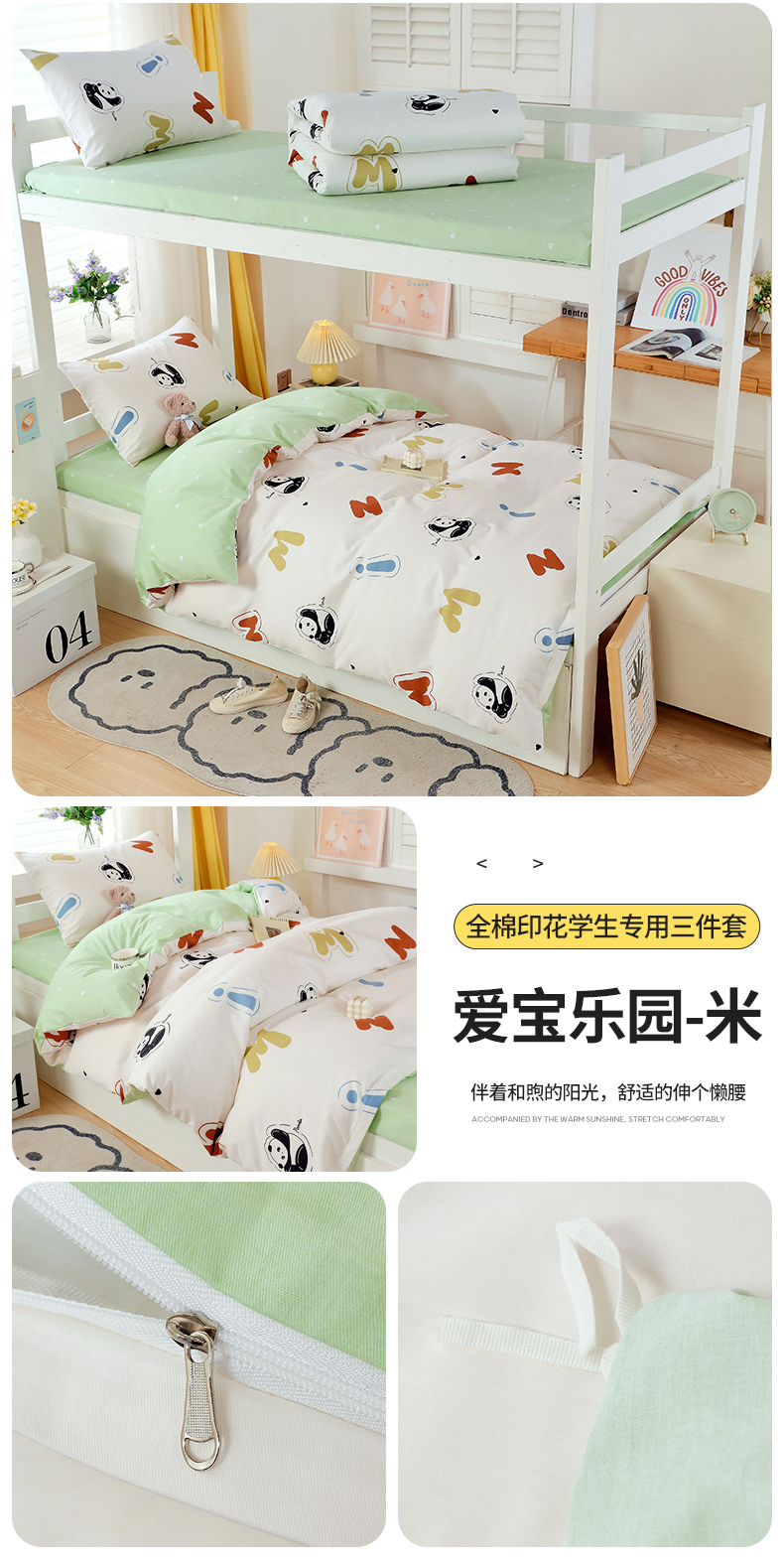 悦织湾家纺 2025新款13372全棉纯棉印花学生三件套正宗高密度活性环保印染上下铺三件套 花间小熊-黄