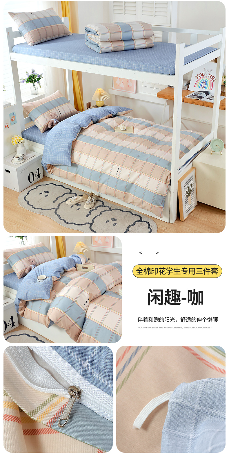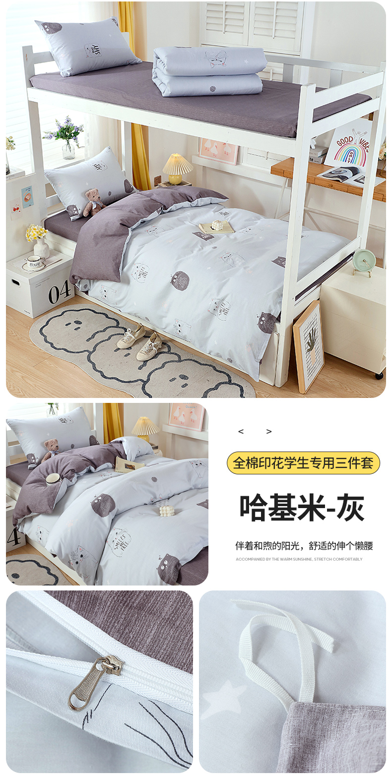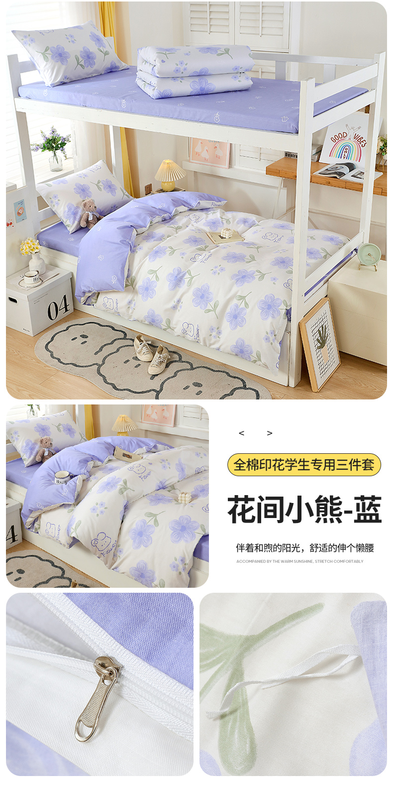 (总)悦织湾家纺 2025新款全棉100%纯棉13376高密度纯色双拼学生三件套活性环保印染宿舍,艾丽卡-冰川蓝,艾丽卡-粉,艾丽卡-灰,艾丽卡-蓝,派对熊-湖蓝,派对熊-蜜桃粉,派对熊-奶油黄,派对熊-天空蓝