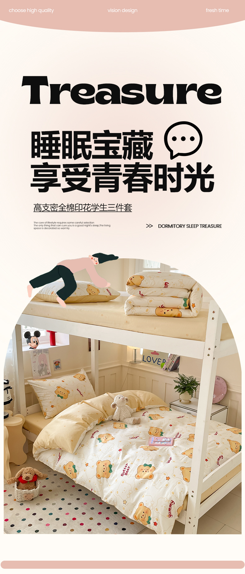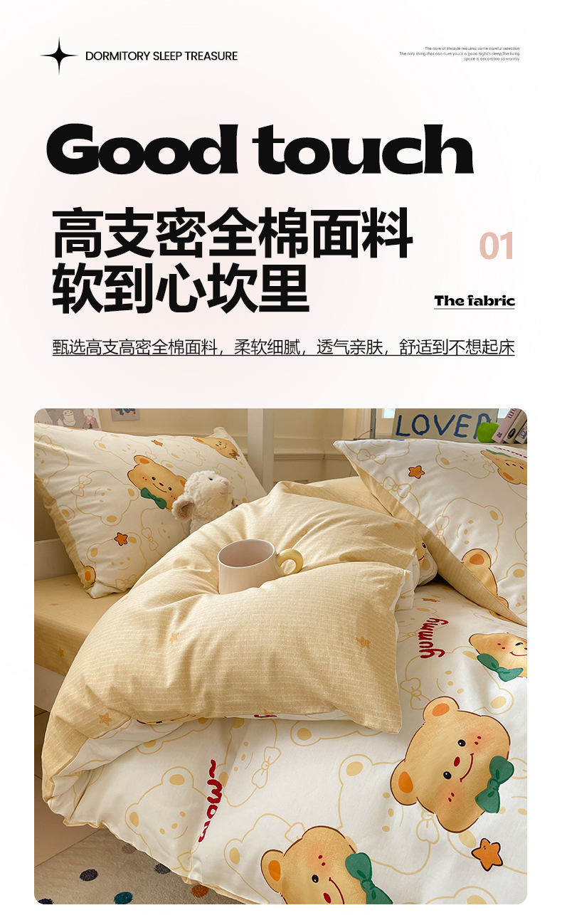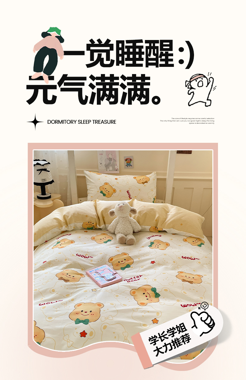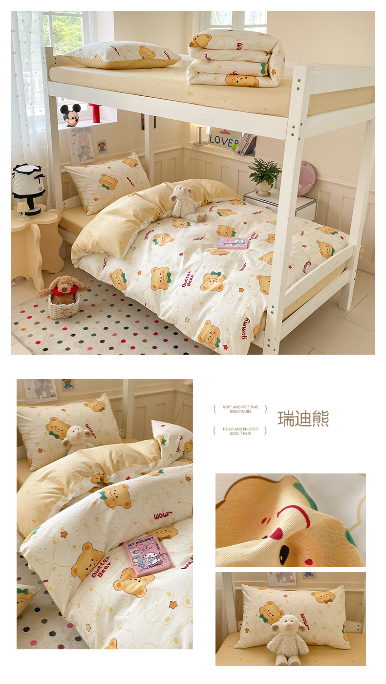 当前位置: 91家纺网 > 商品网购 > 床品套件 > 三件套 > 吉象家纺 2025新款12868高支密全棉印花学生季三件套 瑞迪熊