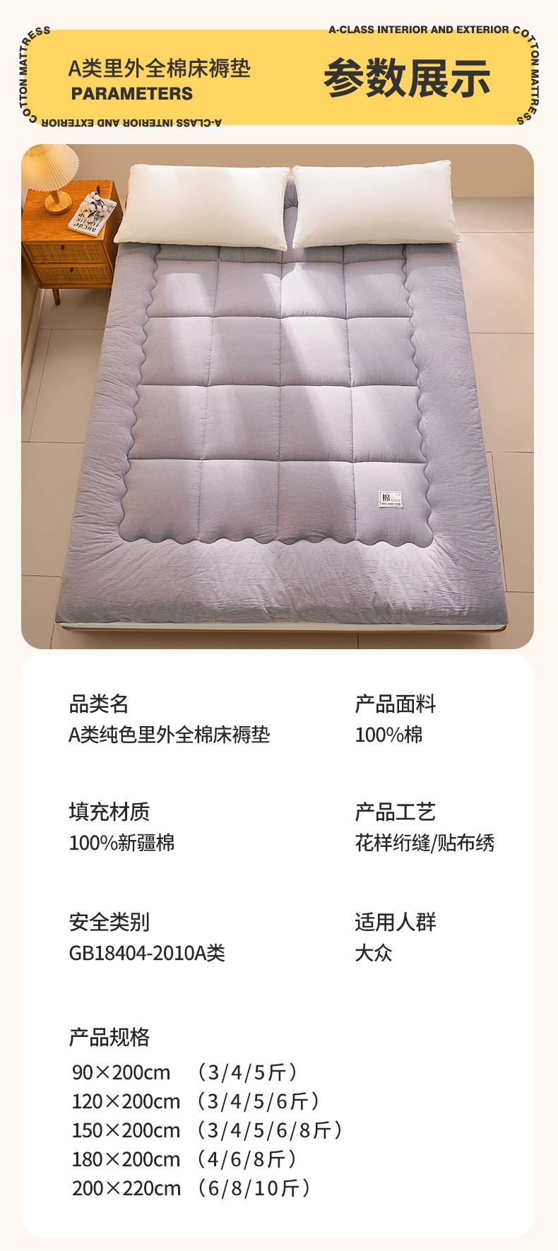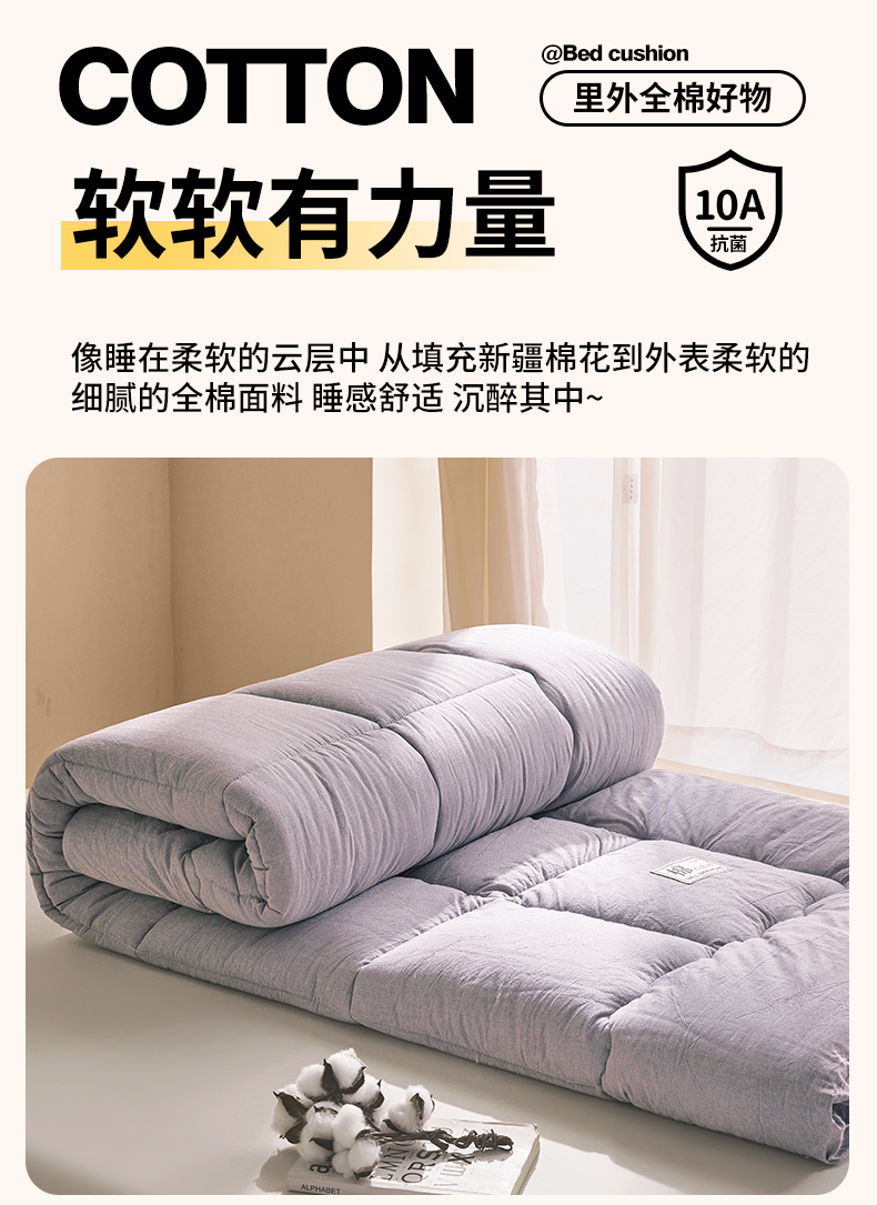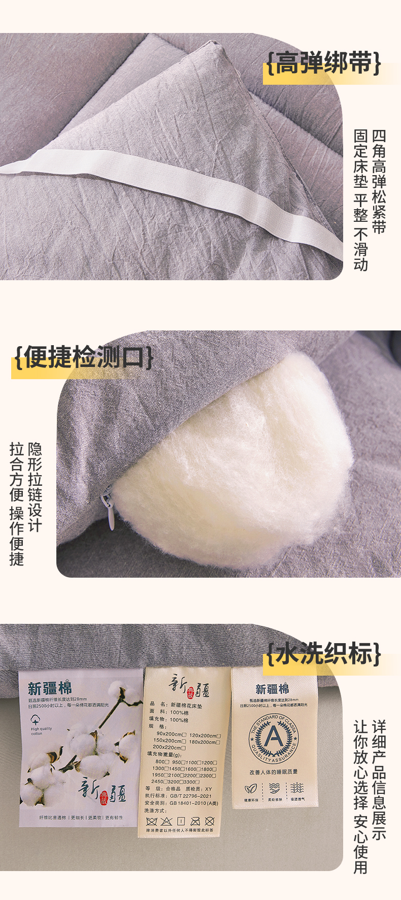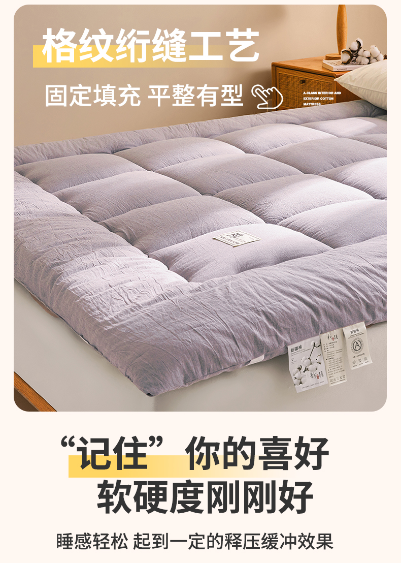 当前位置: 91家纺网 > 商品网购 > 床垫/床褥 > 普通床垫 > 西域种棉人·千百笠 2025新款A类抗菌里外全棉100%新疆棉花褥子床垫垫被软垫家用棉花被褥铺底 夏洛床垫-灰