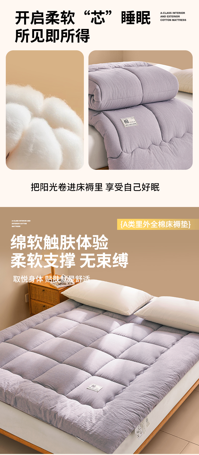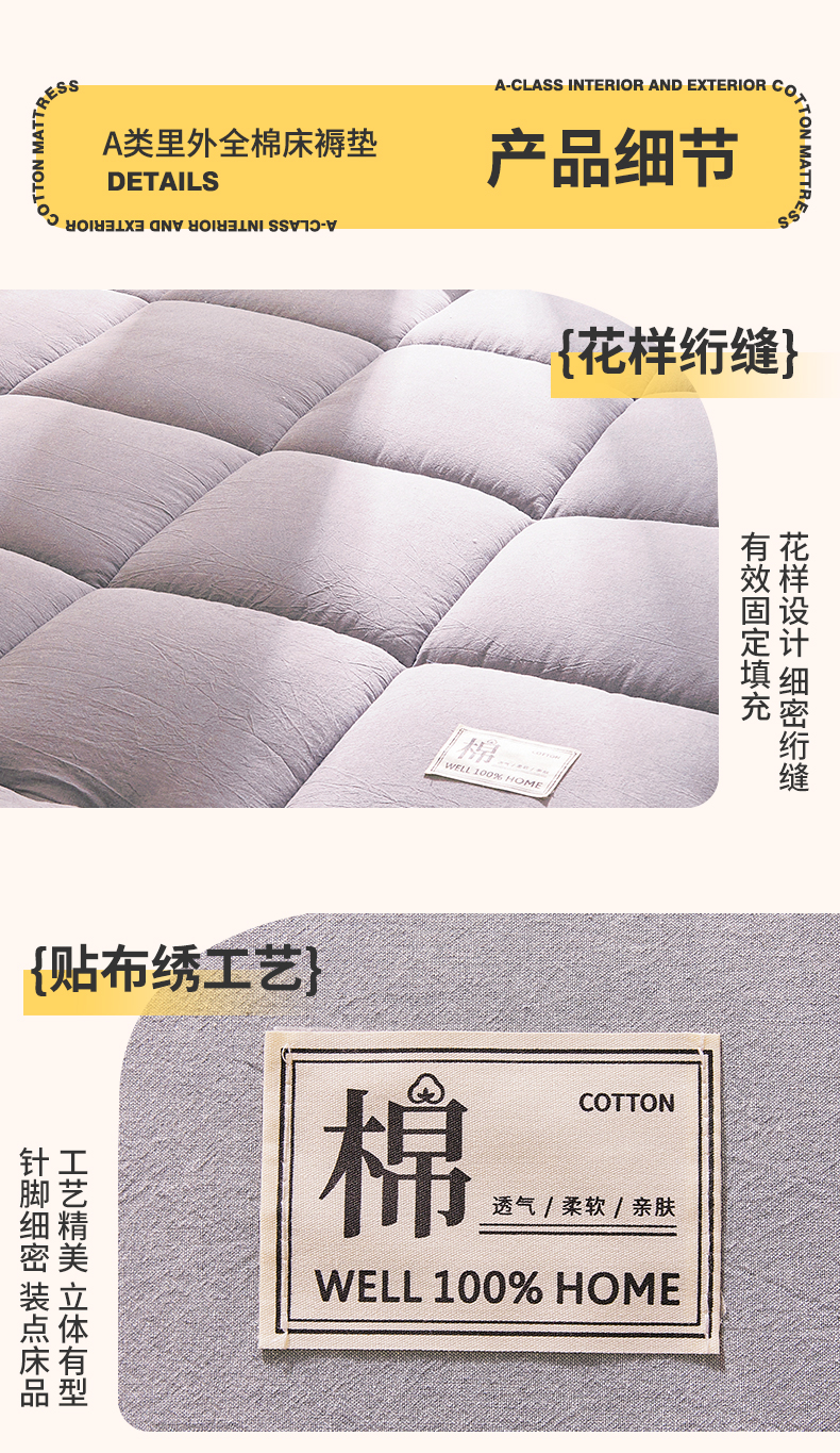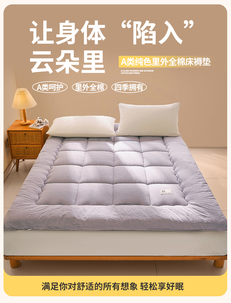 当前位置: 91家纺网 > 商品网购 > 床垫/床褥 > 普通床垫 > 西域种棉人·千百笠 2025新款A类抗菌里外全棉100%新疆棉花褥子床垫垫被软垫家用棉花被褥铺底 夏洛床垫-灰