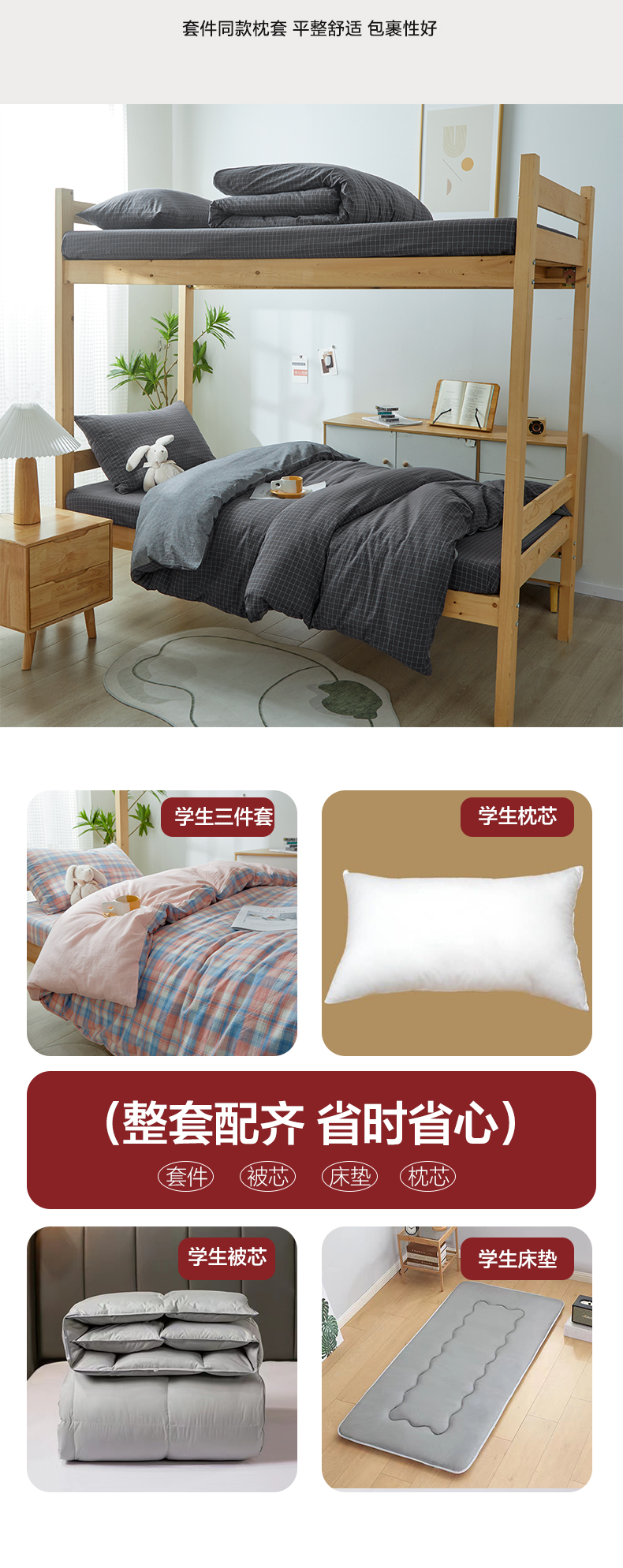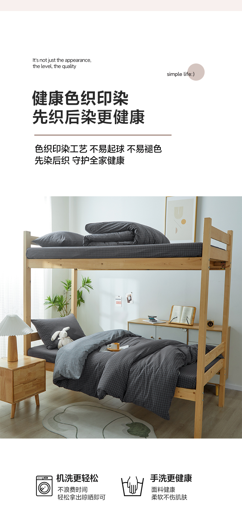 当前位置: 91家纺网 > 商品网购 > 床品套件 > 三件套 > 鸣升家纺 2025新款全棉纯棉色织水洗棉学生宿舍床三件套上下铺三件套六件套 新灰格