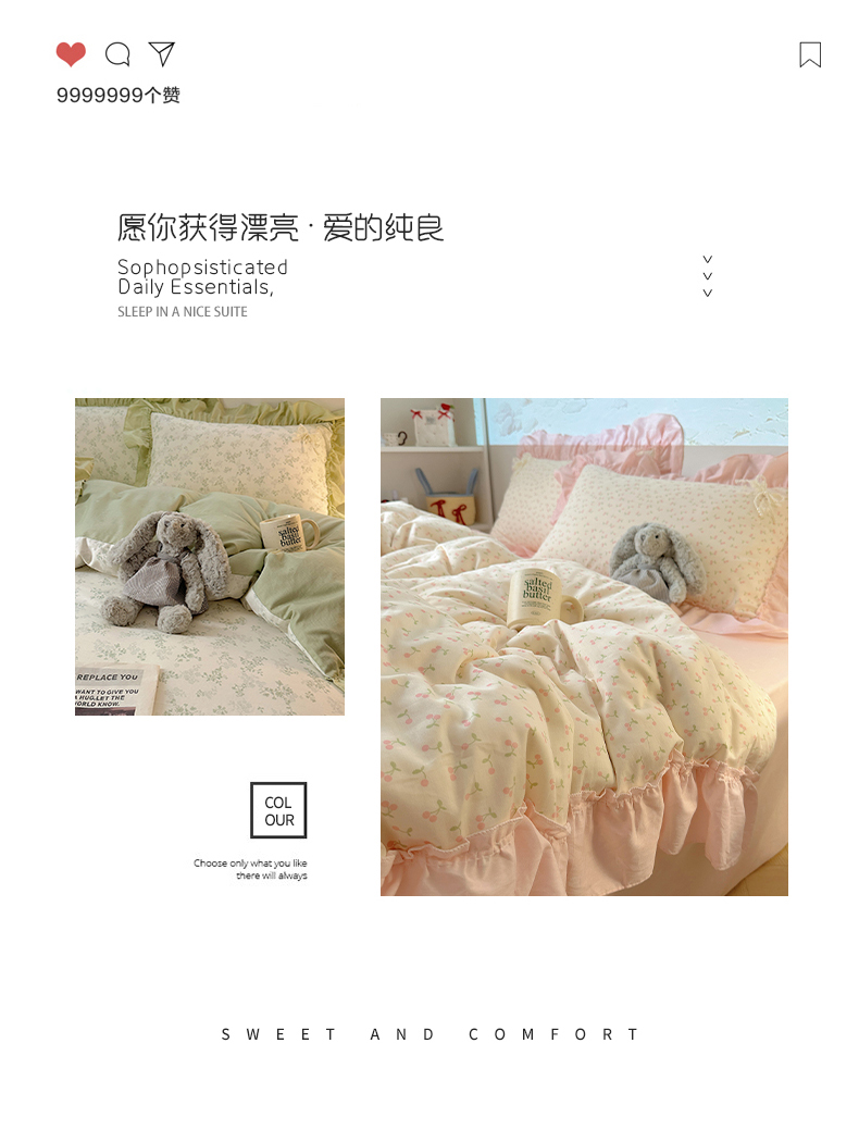 (总)瑞莱 2025新款纯棉全棉印花13372 甜美风四件套