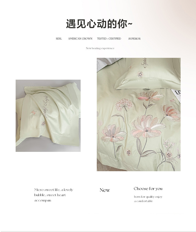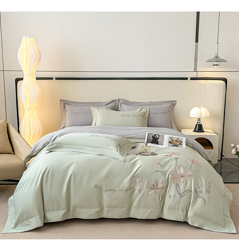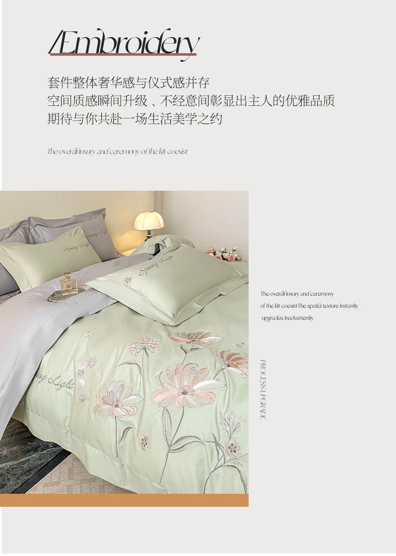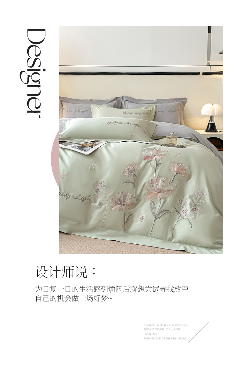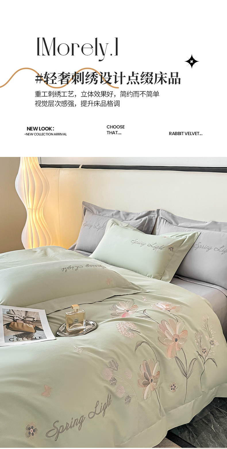 (总)博之洋婚庆 2025新款纯棉全棉长绒棉刺绣绣花高端礼盒四件套-花之语系列,豆绿,豆沙,粉灰,高级灰