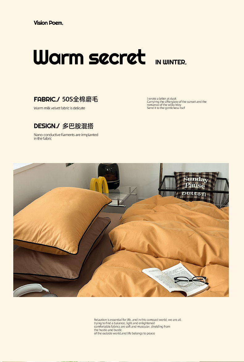 当前位置: 91家纺网 > 商品网购 > 床品套件 > 四件套 > 普通磨毛四件套 > 三朵家纺 2025新款50支加厚全棉纯棉磨毛混搭四件套-美拉德系列 天橙色