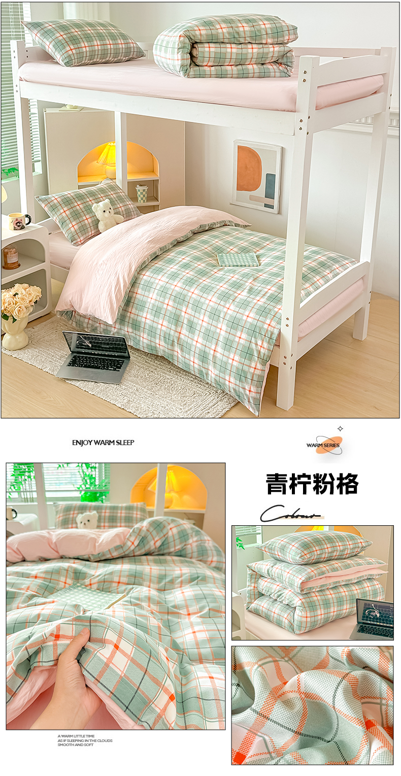 商品名称:梓之赫 2025新款学生季宿舍三件套 青柠粉格