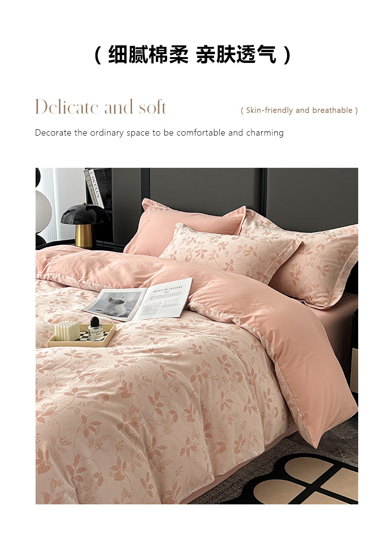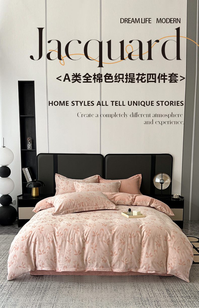 当前位置: 91家纺网 > 商品网购 > 床品套件 > 四件套 > 全棉普通四件套 > 锦彩家居 2025新款A类60支全棉纯棉色织提花四件套-复古风系列 枝繁叶茂-粉