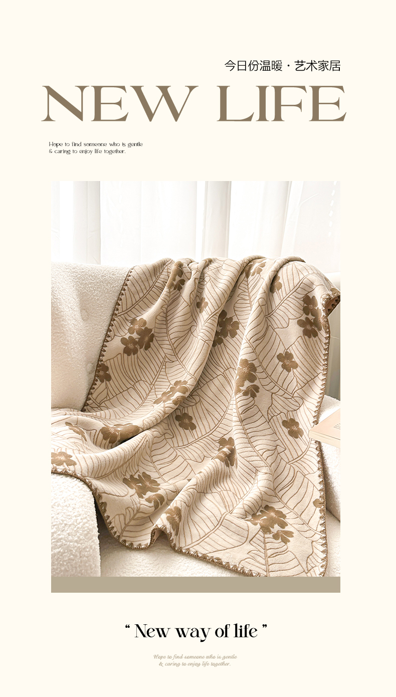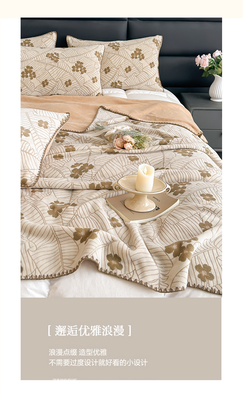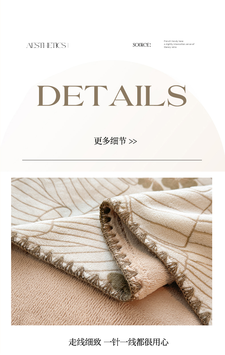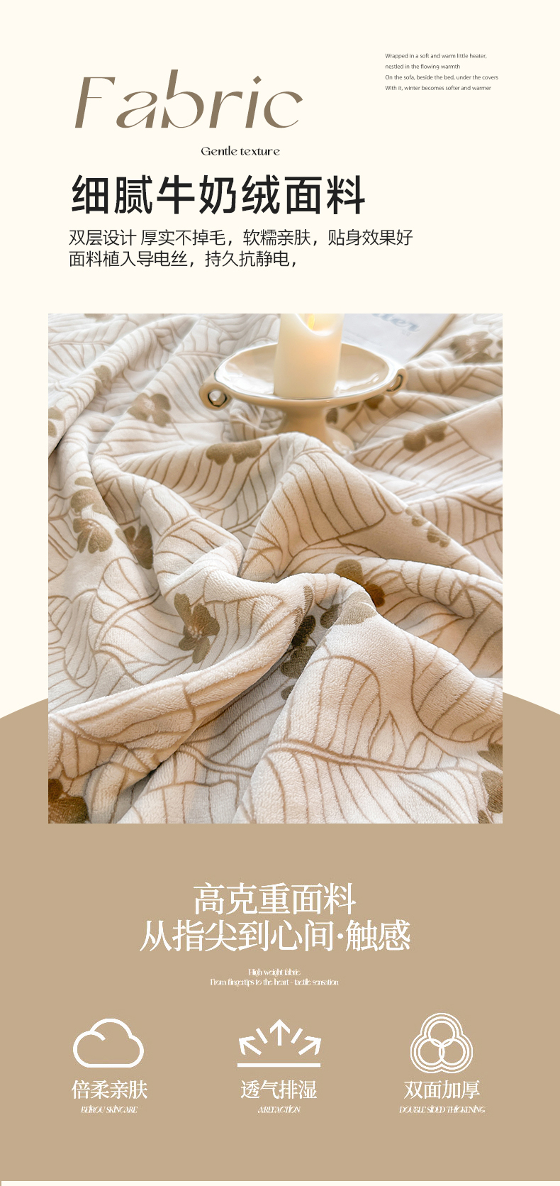 商品名称:芙绣家纺 2025新款高克重双层牛奶绒毛毯加厚冬季毛毯四季毯办公室午休毯牛奶绒床单 清新叶语-咖