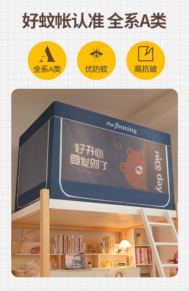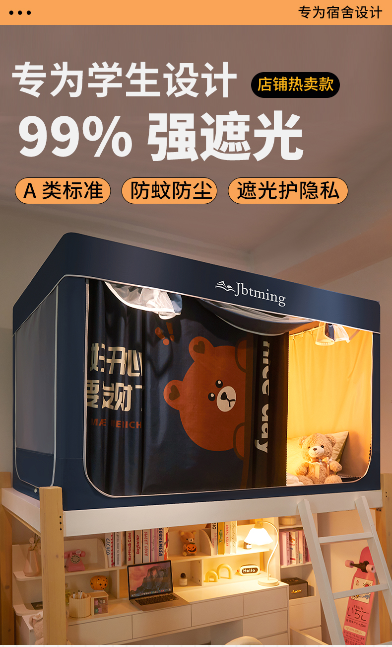 当前位置: 91家纺网 > 商品网购 > 床上用品 > 蚊帐 > 学生蚊帐 > 星际优品 2025新款学生蚊帐遮光床帘植绒环保遮光帘99%遮光-印花款学生蚊帐-二 开心熊-藏青
