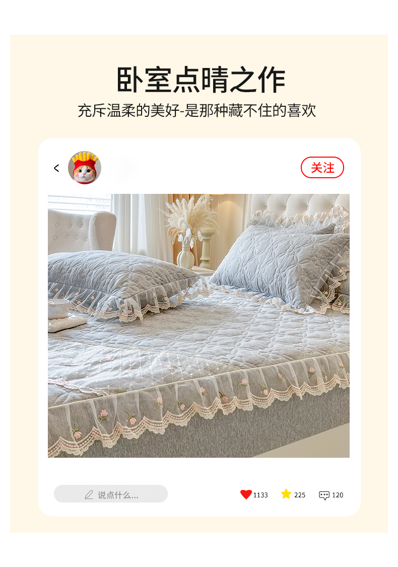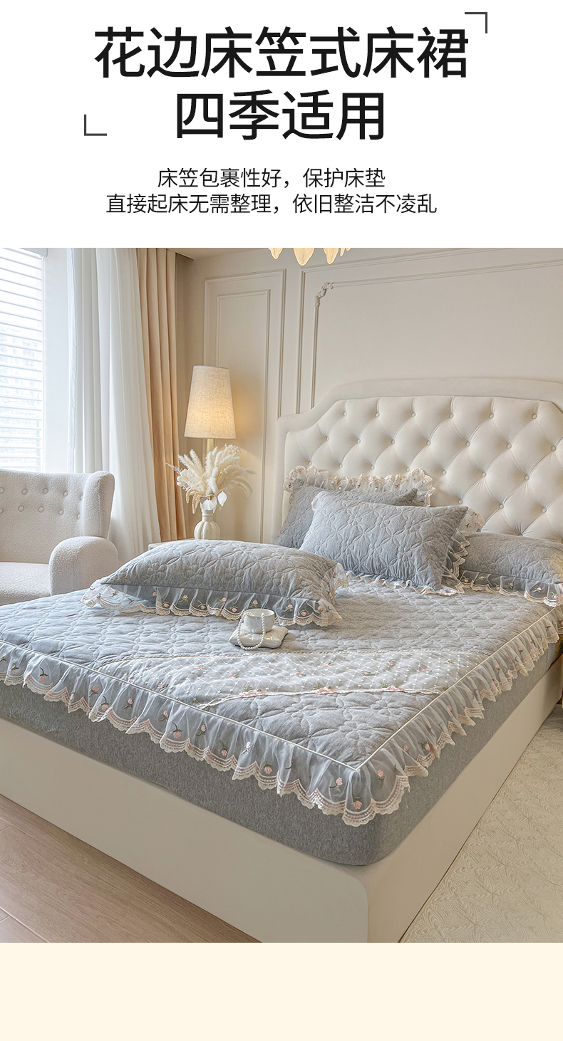 当前位置: 91家纺网 > 商品网购 > 床上用品 > 床笠 > 麒豆豆 2025新款色织蕾丝边床裙款床笠-花亦然 花亦然-烟熏灰